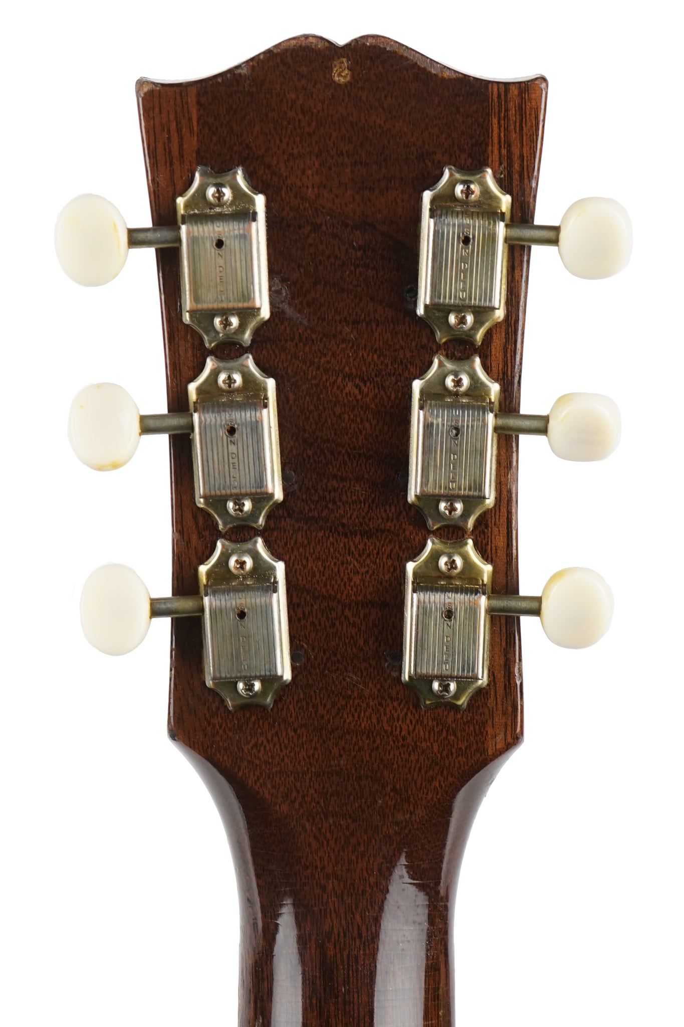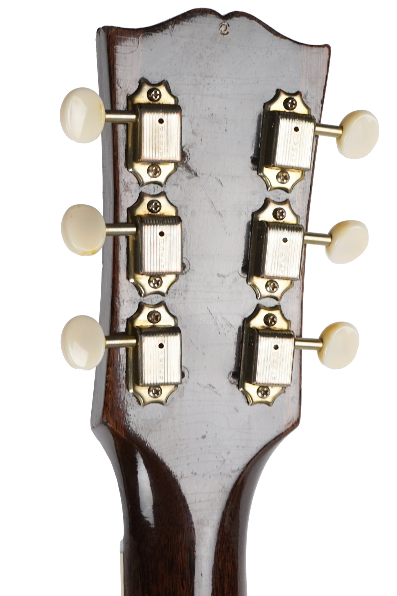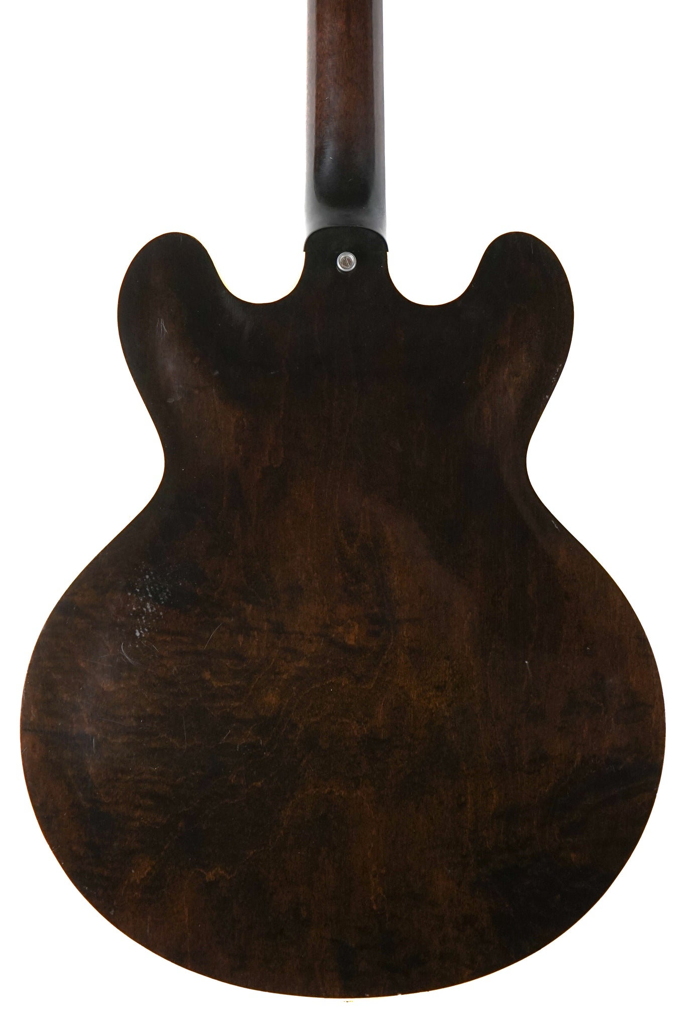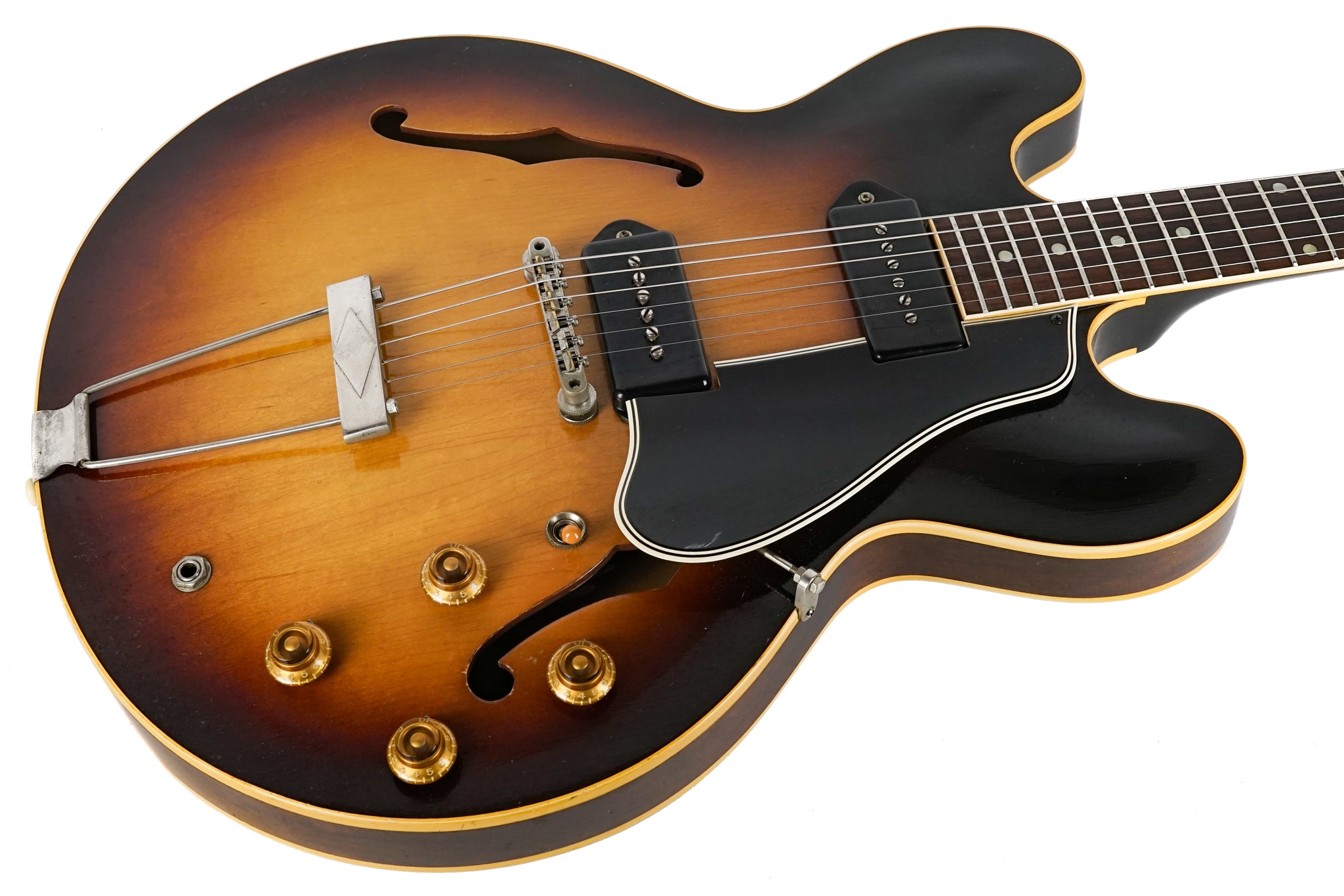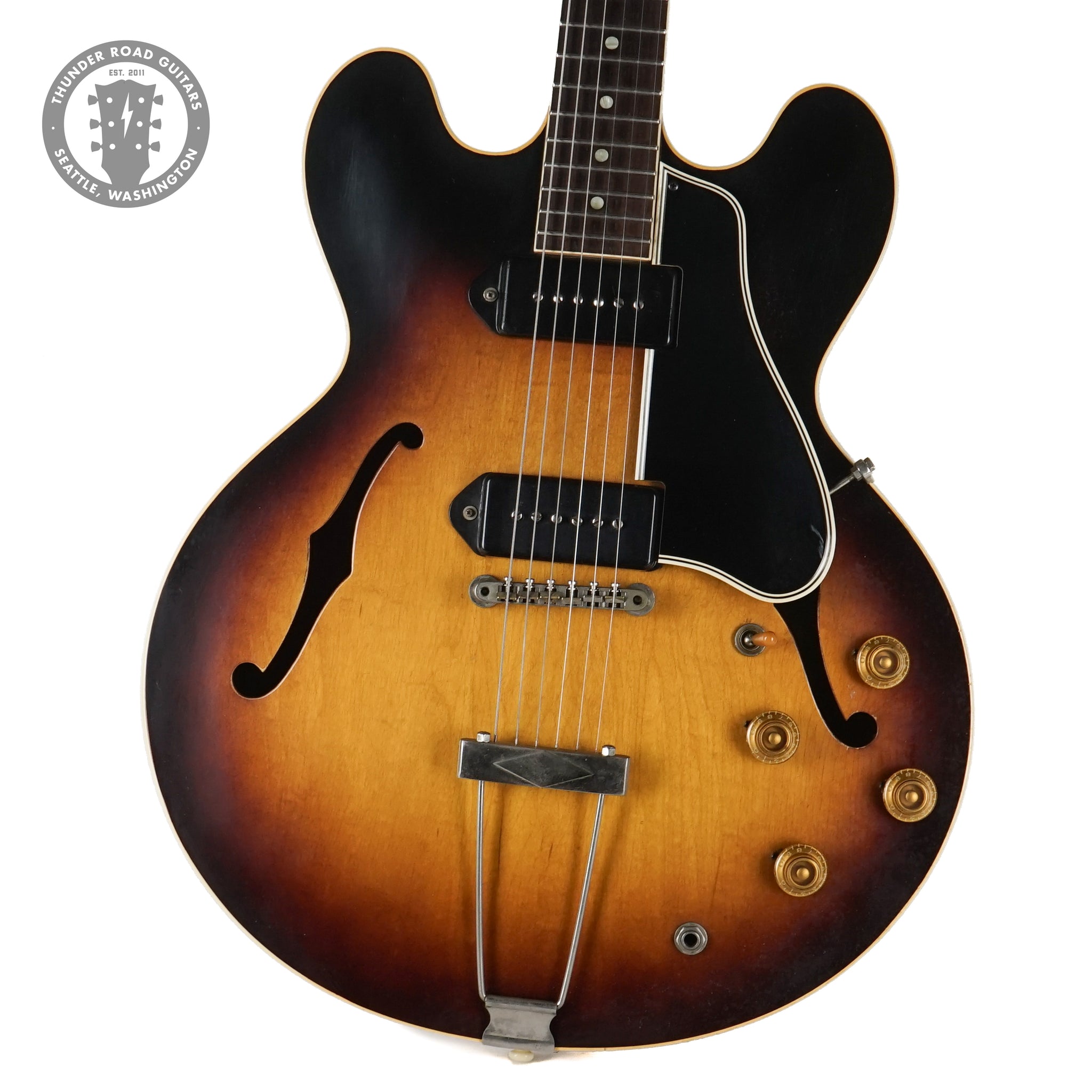 Up for sale is a fantastic, first year 1959 Gibson ES-330 in its original sunburst finish. This example is largely original and has a fat and full '59 neck profile. There is a "2" stamped on the back of the headstock indicating it left the Gibson factory in 1959 with a finish ding or dent. Being this guitar is 66 years old there is no way to know what the original ding was. This guitar is entirely original, minus a pro refret / bone nut and additional tuner holes from a pair of non original tuners. The original tuners are back on the guitar. This example does have a vintage sheen to the finish with light spotting / clouding. Nothing you wouldn't expect to see on a vintage Gibson, but worth noting. A later 60s era Gibson case is included. No breaks or repairs and condition wise is very nice. It sounds stunning and plays very well with the new frets. Pro setup in house. Weight: 6lbs. 0oz.