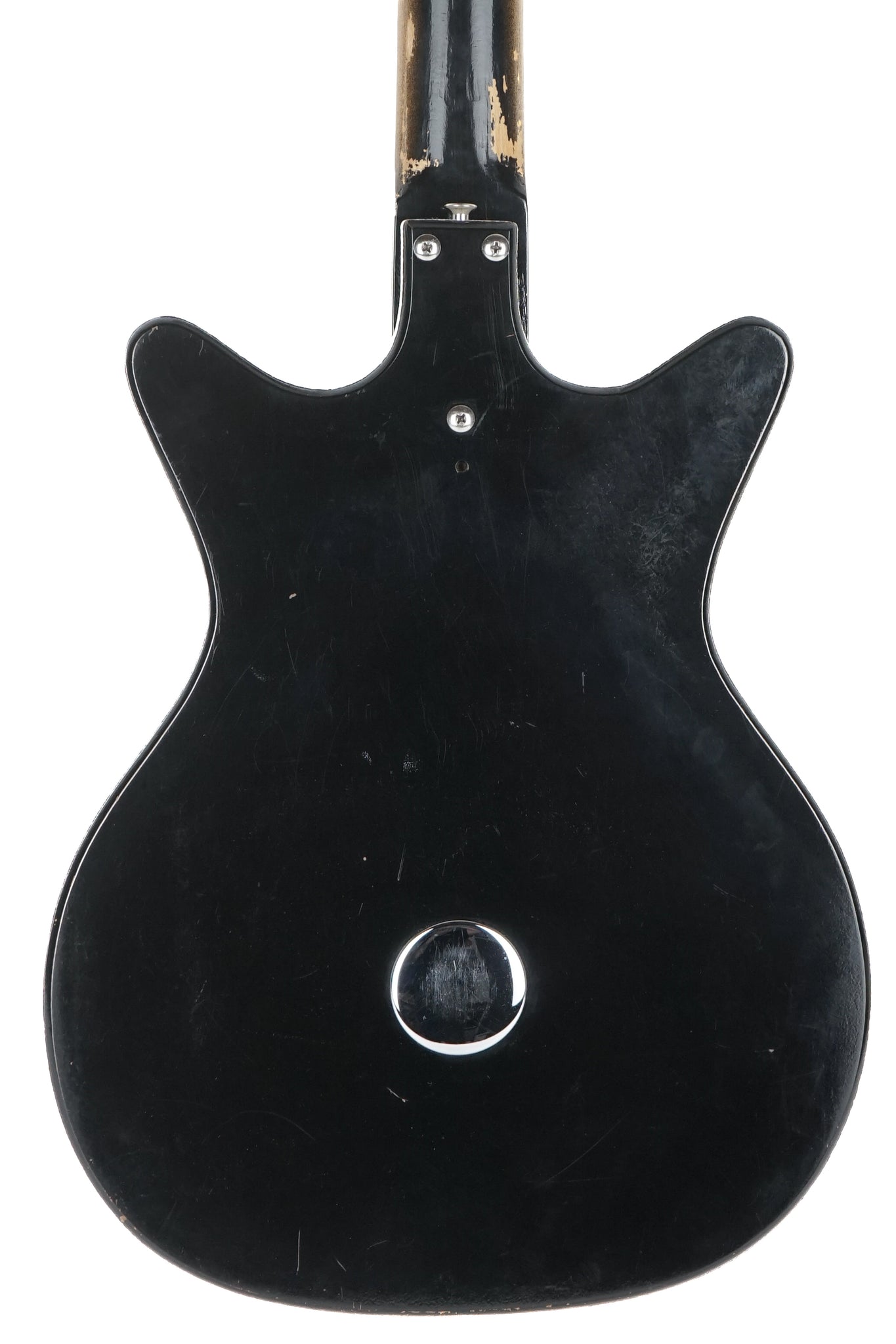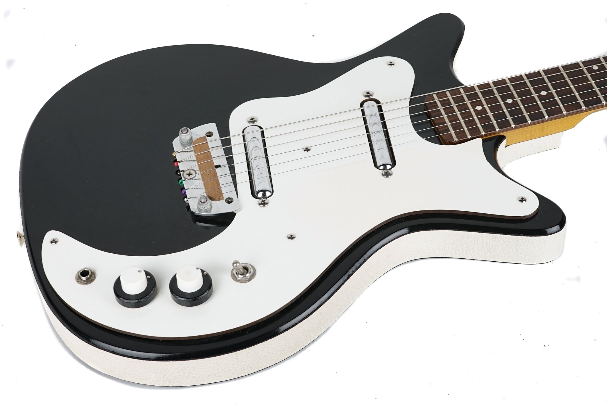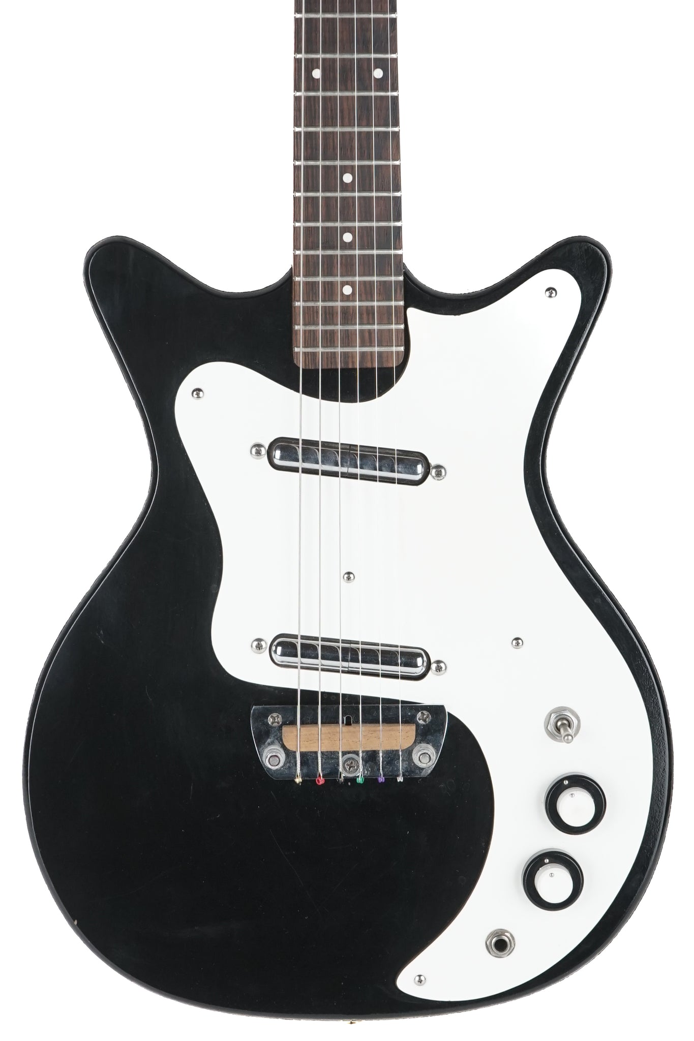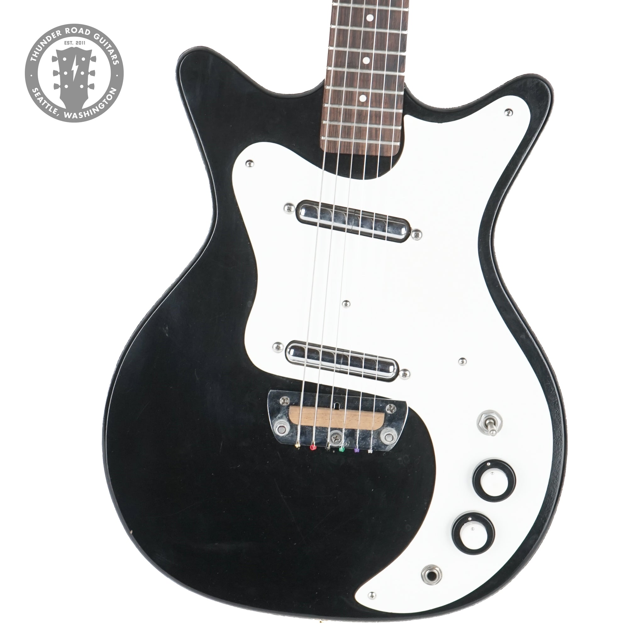 Up for sale is a killer and rare 1965 Danelectro 4021 double cutaway in black. This model features a double cutaway body design, dual lipstick pickups pickup and bat wing headstock. Overall in very good to excellent condition and entirely original. Comes complete with a period correct gray / square Silvertone / Dano case. Weight: 6lbs. 10oz.