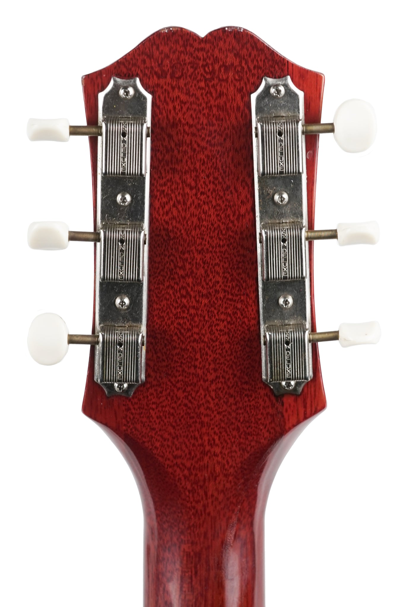 Up for sale is a squeaky clean 1963 Epiphone Coronet in its original cherry finish. I absolutely love this era of Coronets and this one is flat out awesome. Entirely original with a hot original dogear P90, chunky neck profile that measures .88 @ 1st and 1.02 @ 12th. Very clean less some faint play wear and a small area of missing finish on the bass side of the neck near the neck pocket. The bridge has been changed on this one and replaced with a Mojoaxe tailpiece however the original is still present. Weight: 6lbs. 11oz.