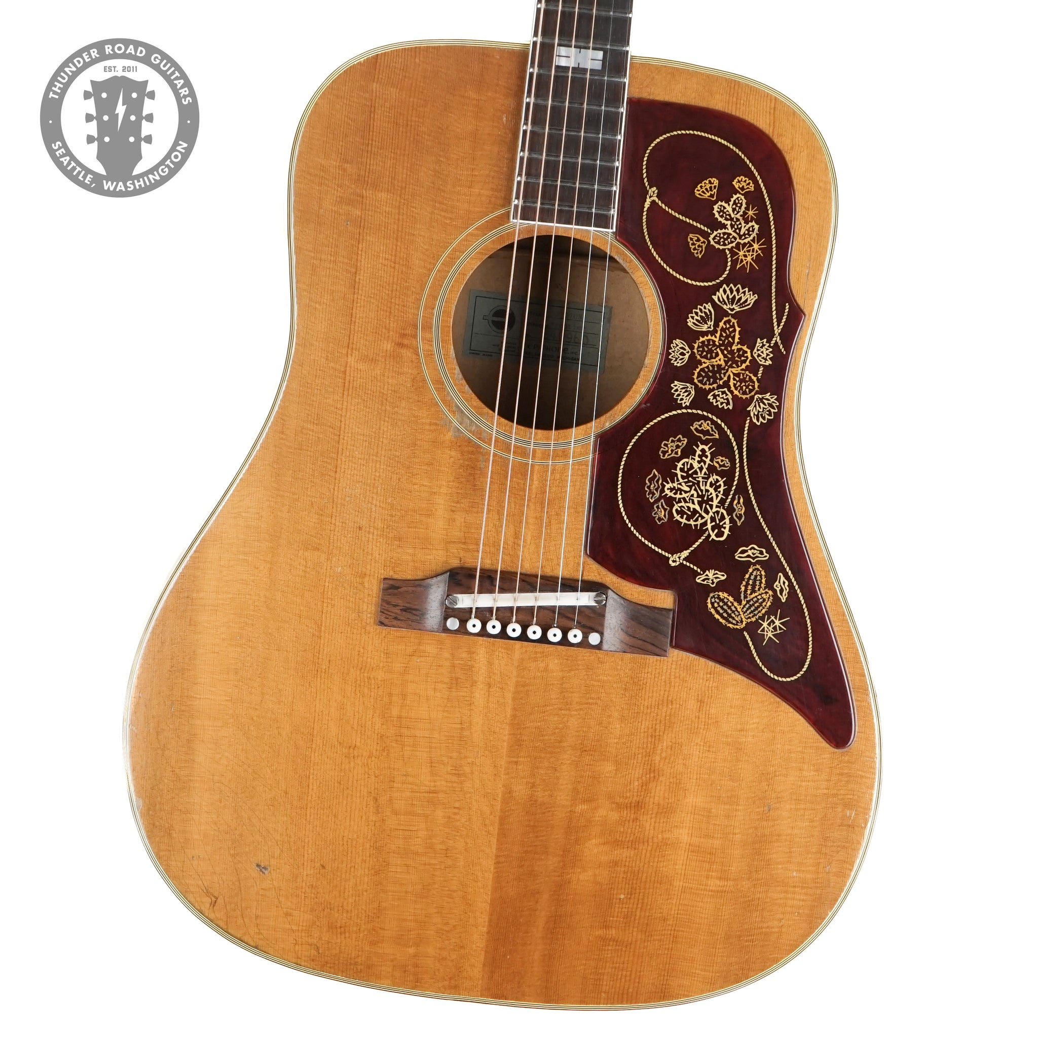 Up for sale is a stunning and somewhat rare 1964 Epiphone FT-110N Frontier in its original natural finish. This might just be my personal favorite acoustic in the shop right now and I must say it sounds glorious. What makes this one special? We typically see the mid 60s Frontiers in sunburst and this one being natural with a factory heel stinger gives it some serious swagger and cool factor. Nut width is 1 5/8 and the neck measures .85 @ 1st and .93 @ 9th.