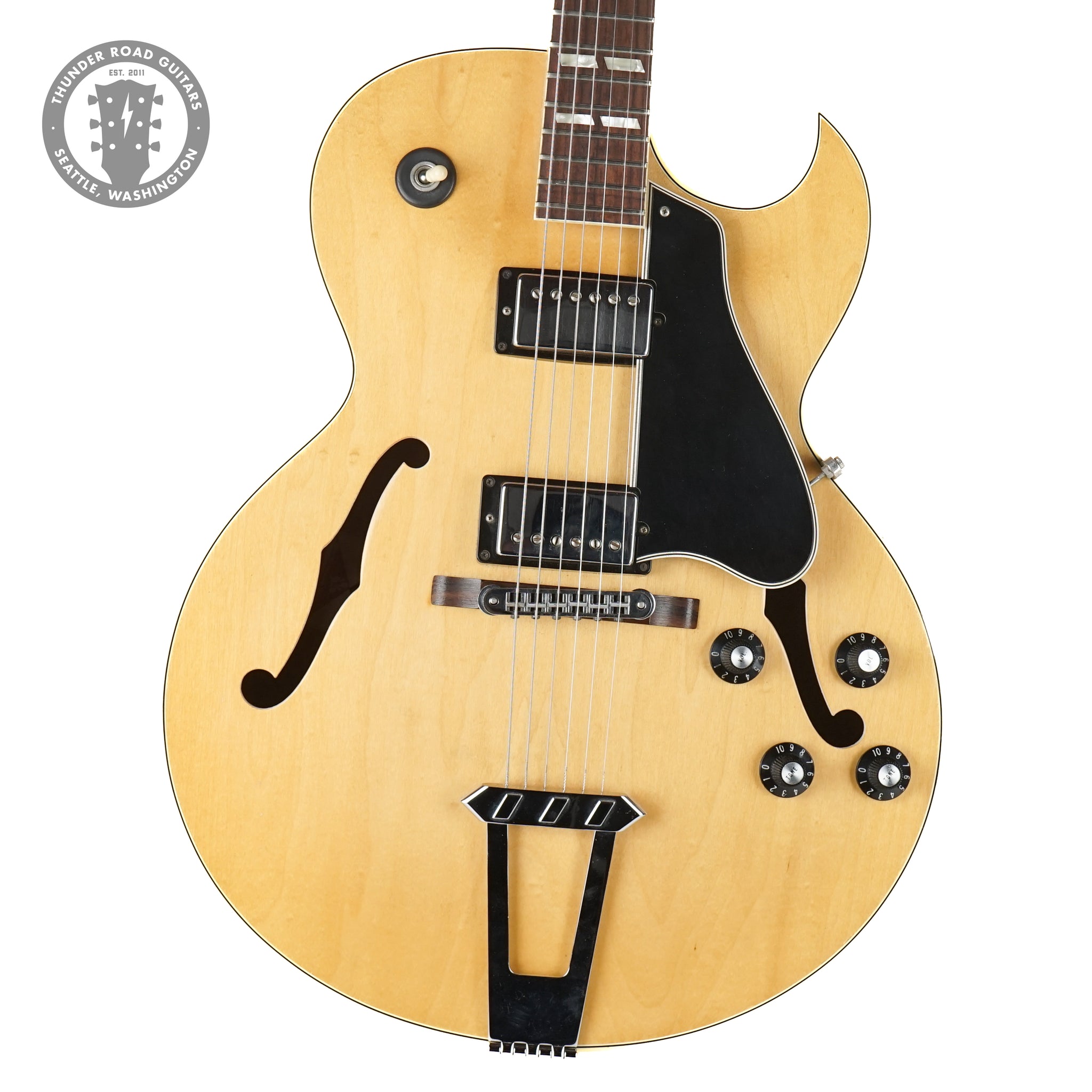 Up for sale is a 1979 Gibson ES-175D in its original natural blonde finish. This example is in amazing condition and is bone stock! It does have a "second" stamp on the back of the headstock and although this guitar is stamped factory second, it is in remarkable condition for its age, showing little signs of finish wear and play-wear. Historically Gibson would mark guitars factory second that had some sort of ding or finish flaw when it left the factory. Being this guitar is now 45 years old it is impossible to tell what the original ding or flaw was. This example is entirely original and has been professionally set up in house by our esteemed tech. This stunning ES-175 ships with its original hardshell case, from which some of the trim is peeling. Weight: 7lbs. 2oz.