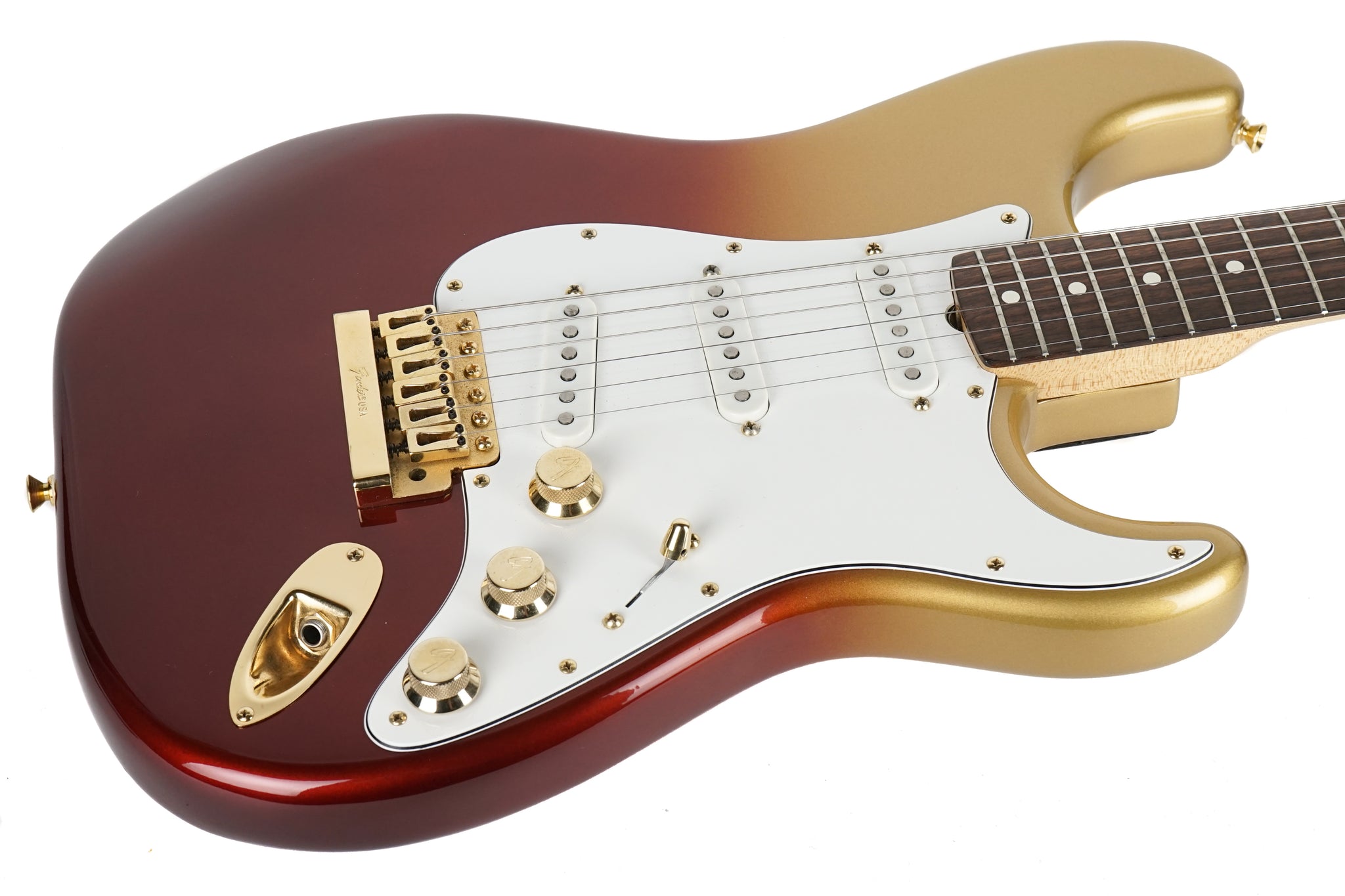 Up for sale is a super cool and quite rare 1982 Fender "The Strat" Stratoburst in Red to Gold. I absolutely love the look of this one and surprisingly it is a little lighter in the weight department than this model typically is. Overall very clean showing little signs of play wear or finish wear less a few minor dings on the back of the body. This example is entirely original less the 2nd position tone switch which normally is a rotary and has been changed to a TBX control. Pro setup in house and comes complete with its original hard case. Weight: 8lbs. 11oz.