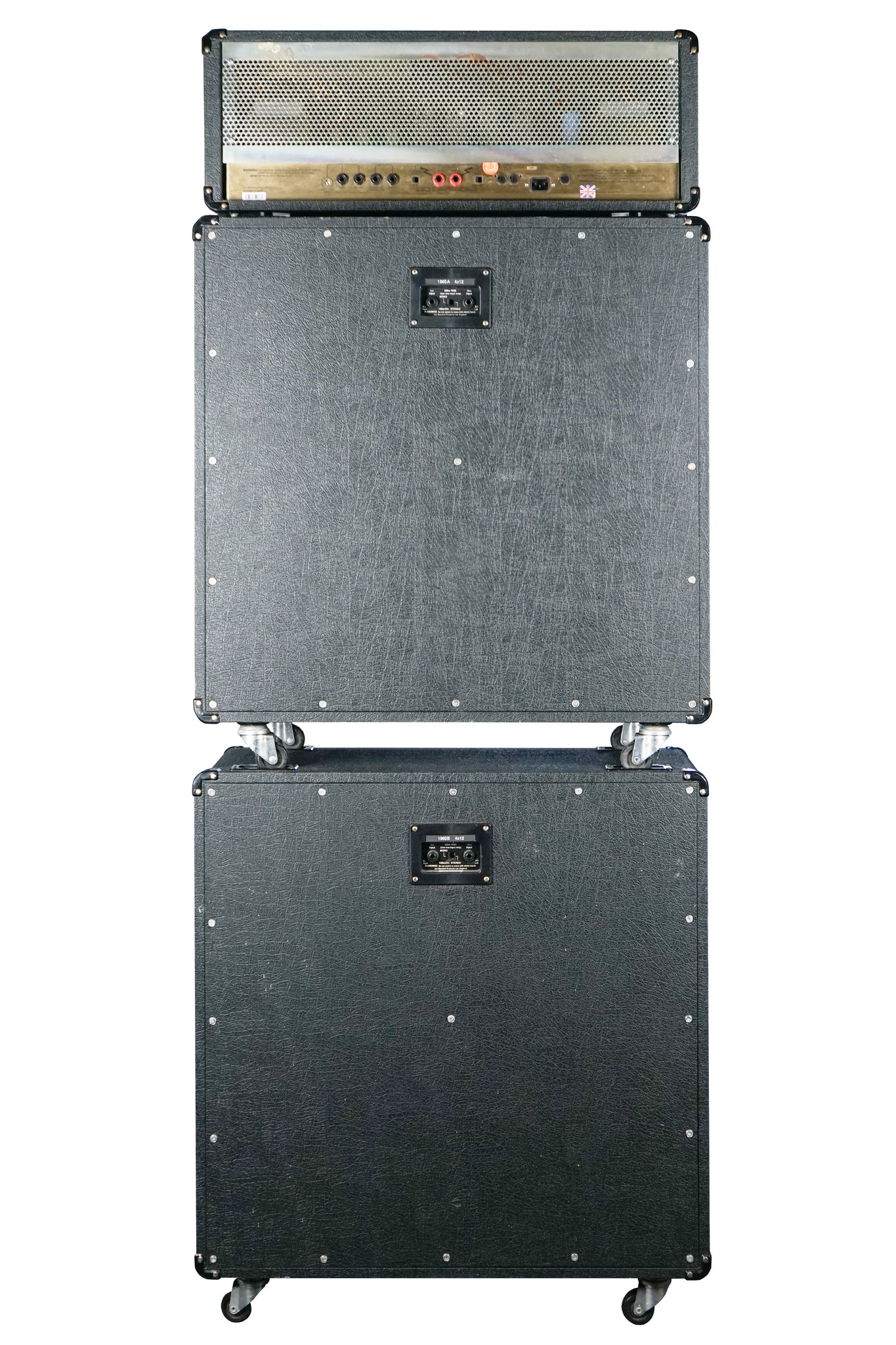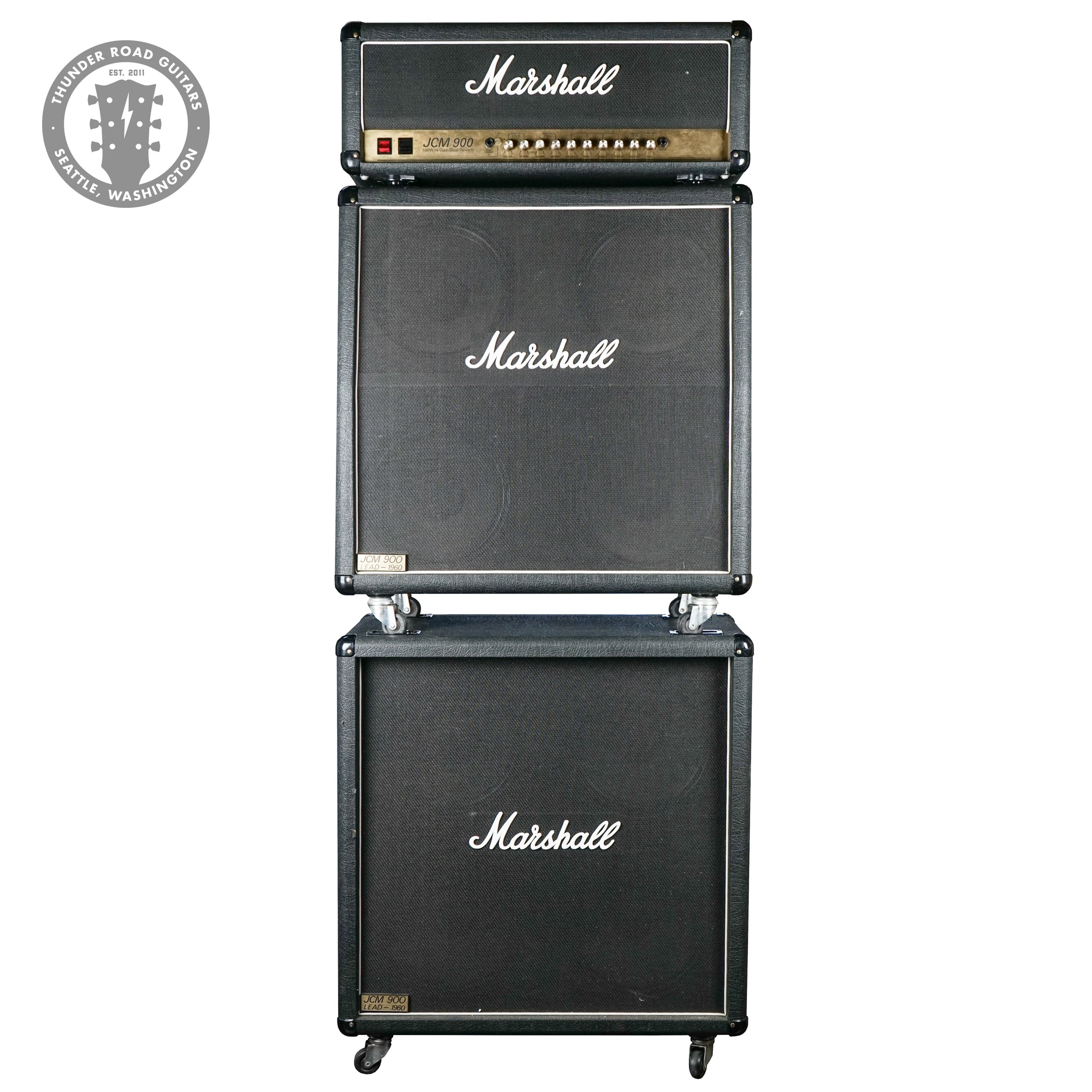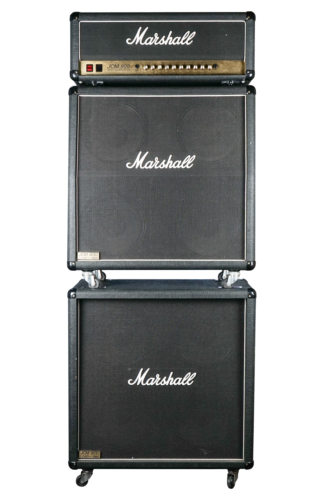 Up for sale is a fantastic 1993 Marshall JCM 900 Head model 4100 w/ matching 1960B and 1960A cabs. If you want the heavy tone, you need the heavy rig! This set is in great shape showing light signs of tolex wear and being it was in storage for some time has a very faint hint of "storage scent" to it. Sounds killer, works great. No footswitch.