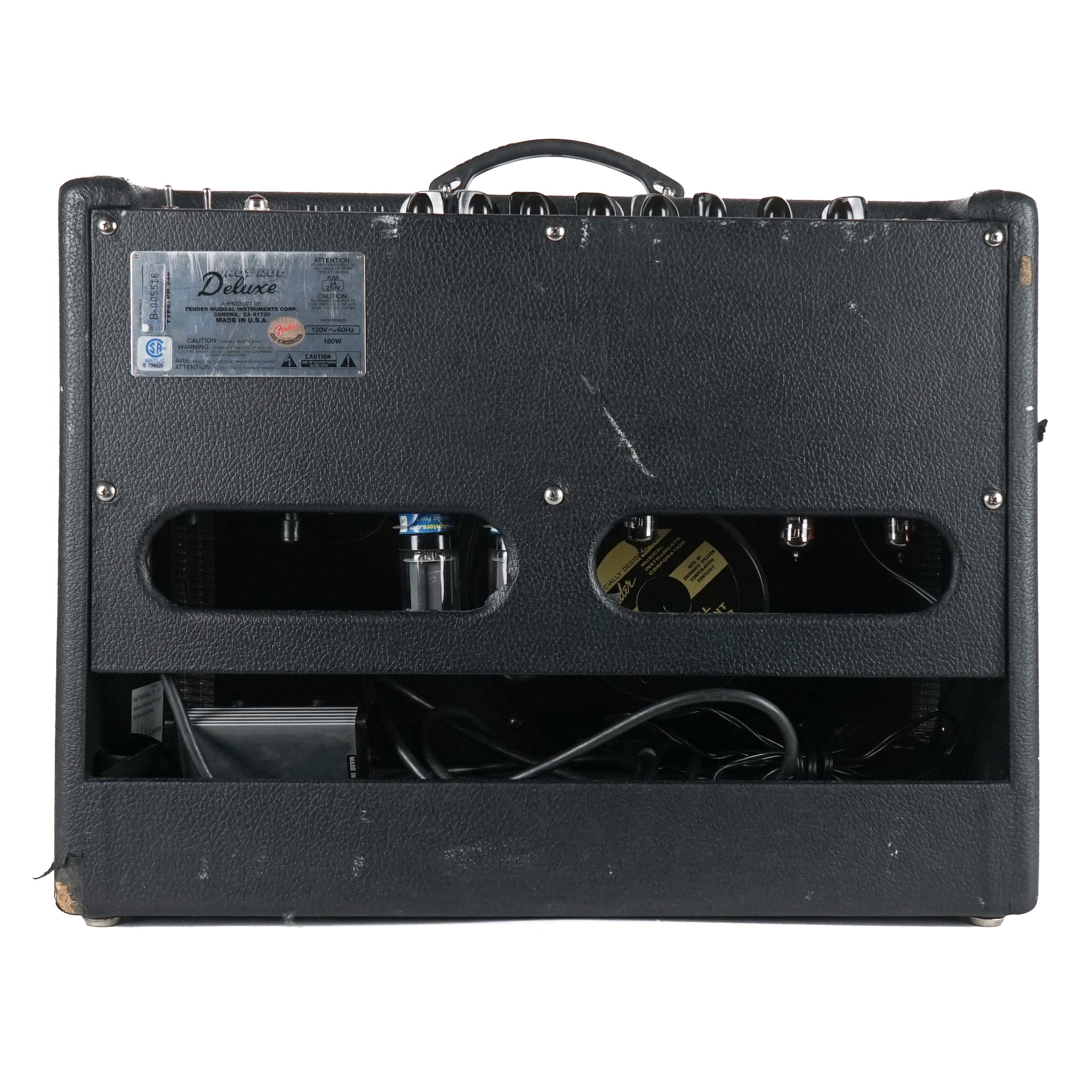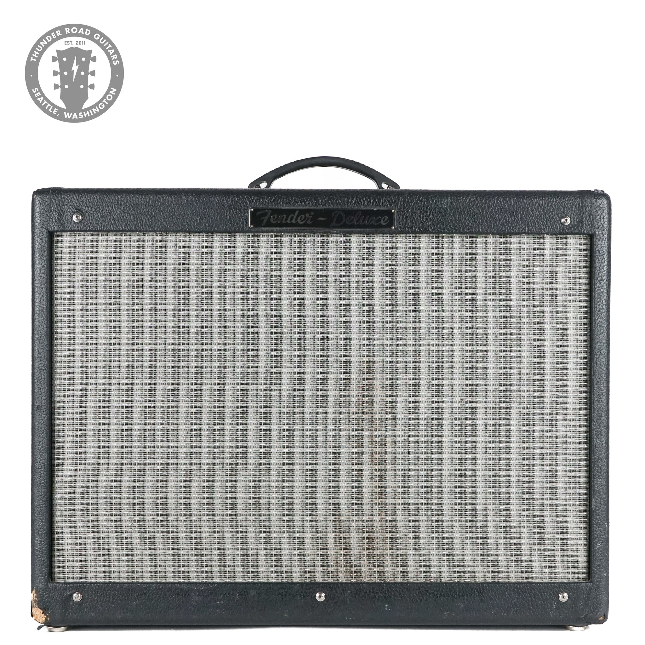 Up for sale in the shop is a 1996 Fender Hot Rod Deluxe. The USA made versions of these are great! This one comes to us in good cosmetic condition with a noticeable stain on the grill cloth and some heavy tolex wear. It's also worth mentioning some of the lettering has worn off around the "on" switch. Please see our photos for a complete cosmetic rundown.