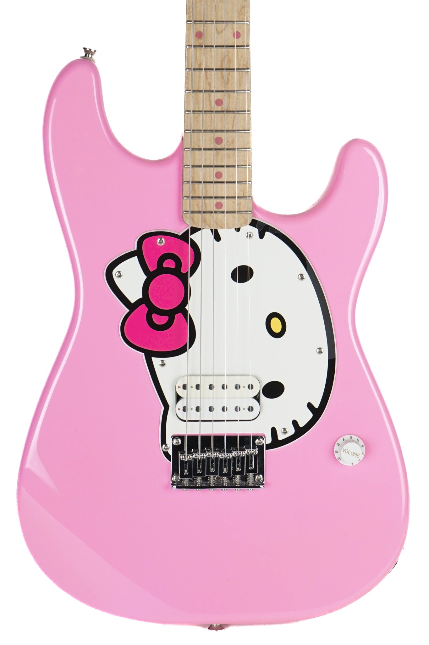 Up for sale is a 2005 Squier Hello Kitty Stratocaster. We love when these come through the shop. This model became super popular in the mid 2000's and are now very sought after . This one comes to us pretty clean with minimal signs of play wear. There just a handful of very minor scratches and it appears as if some of the gloss coating of the black on the kitty pick guard has come off (See in photo) but besides that this one is a ton of fun to play. This one does not come with a case but does come to you with a full pro setup from our in house tech.
