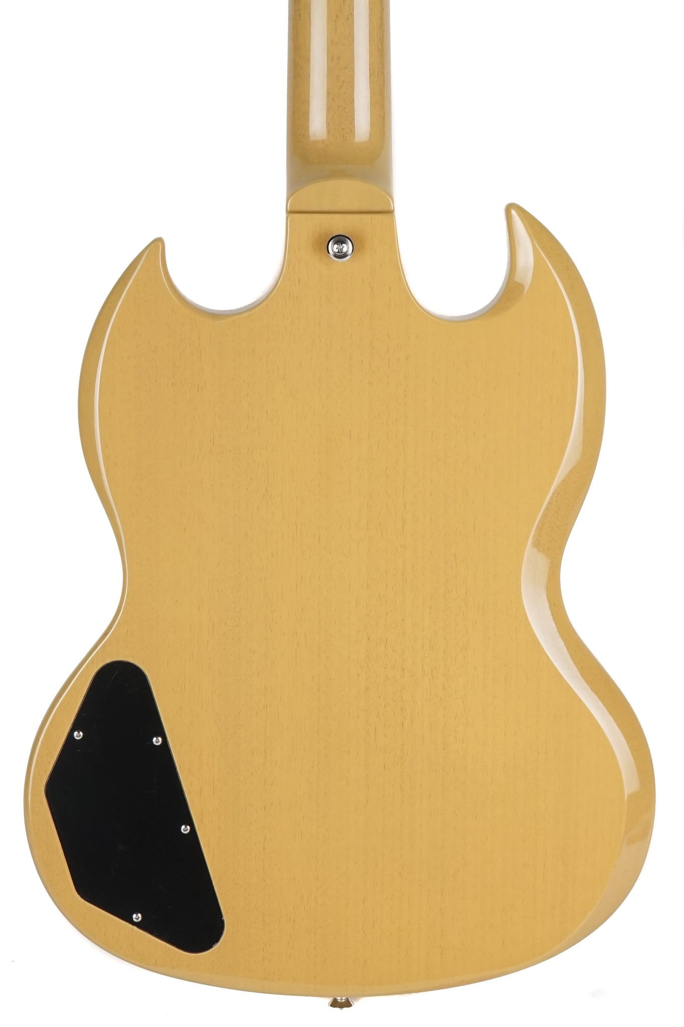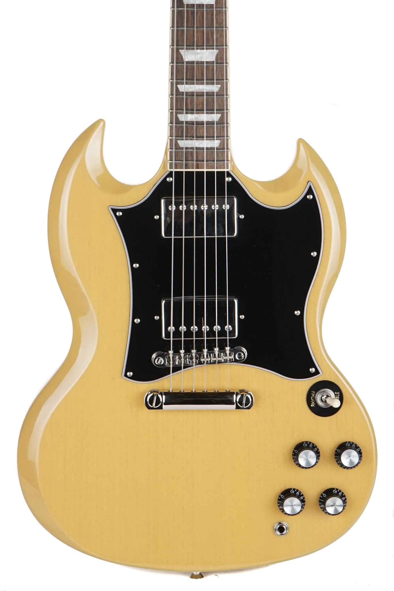 Up for sale in the shop is a really clean 2024 Epiphone Inspired by Gibson SG Standard in TV Yellow . Who doesn't love a good TV Yellow SG Standard? This one features a Contoured double-cutaway mahogany body, mahogany neck with SlimTaper C profile, bound laurel fretboard with 22 medium jumbo frets and pearloid trapezoid inlays, Grover Rotomatic tuners, and ProBucker pickups. Cosmetically this one shows very little signs of play wear. It comes to you with a gig bag and a fully professional setup form our in house tech.