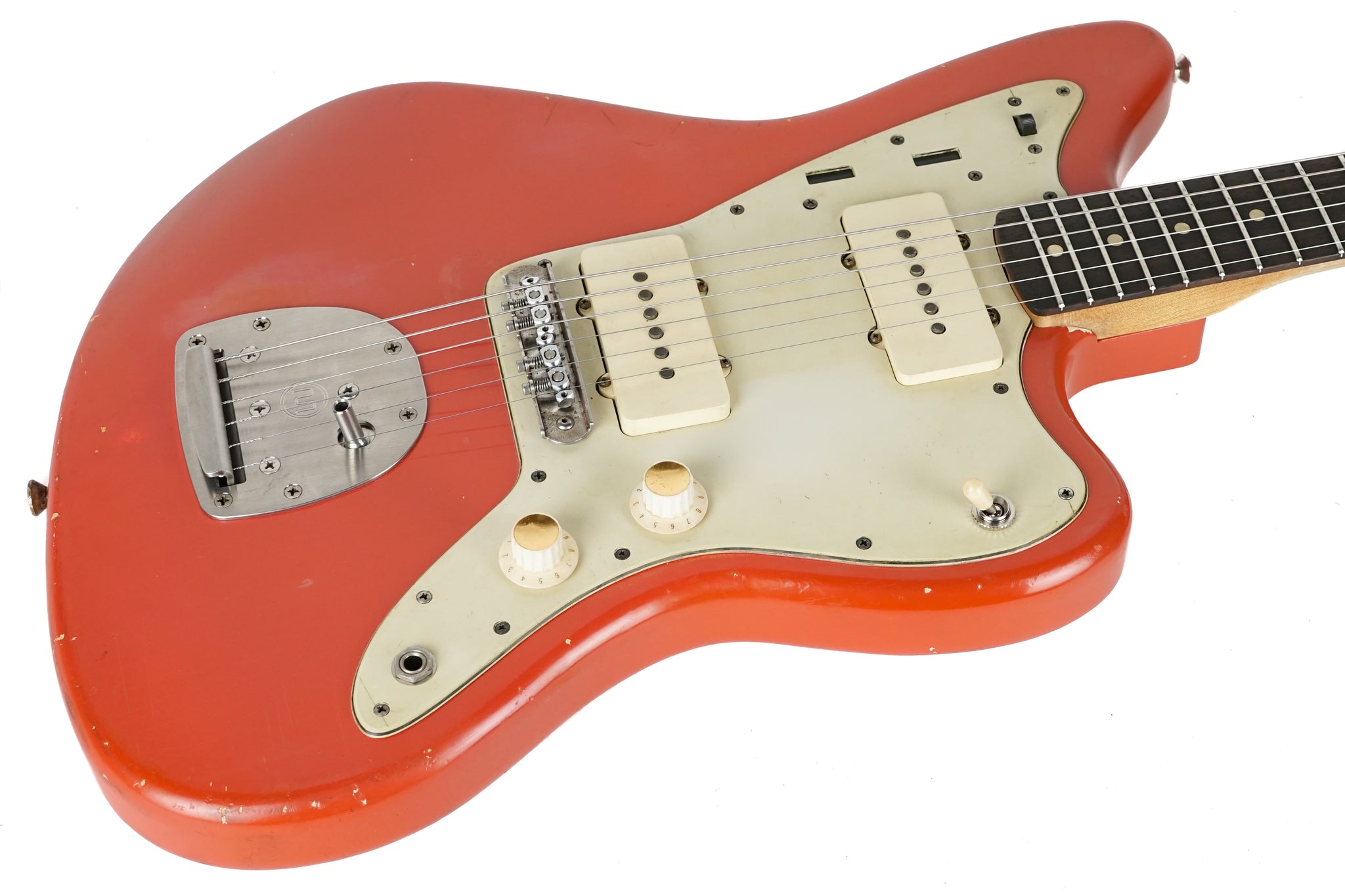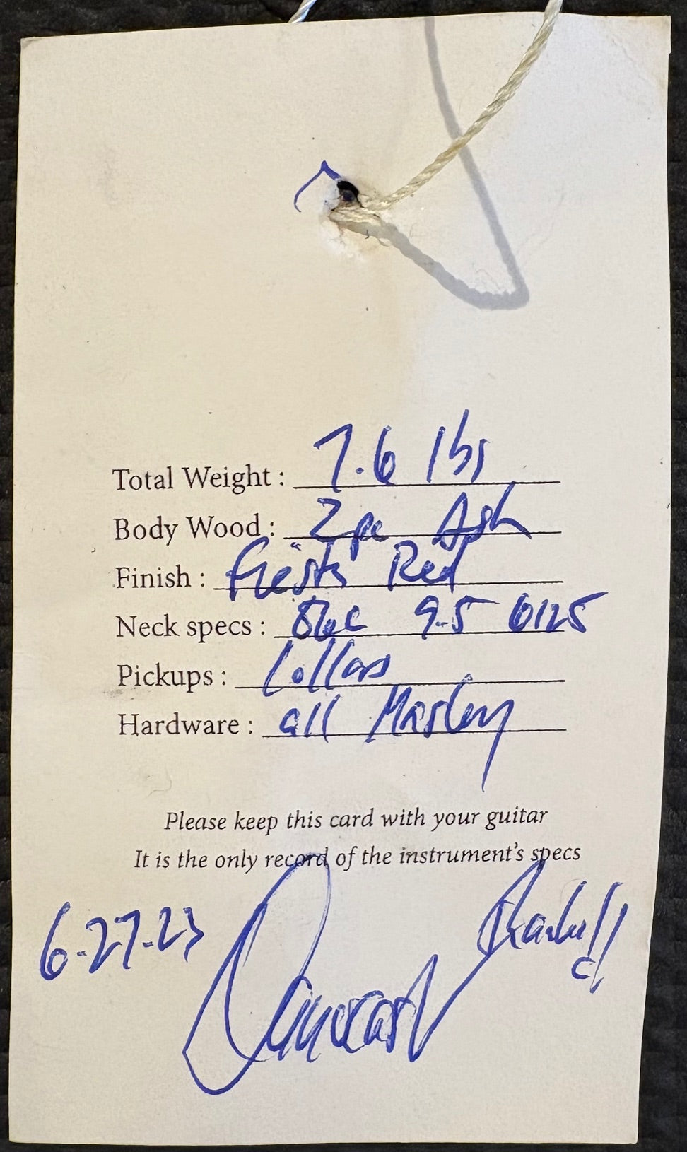 Up for sale is a 2023 Danocaster Offset in Fiesta Red. Can anyone say they have met a Danocaster that they don't love? This one comes to us from the home of the previous owner in very good condition less some play wear and some finish blem on the back. One notable thing is that the Mastery bridge has been glued into the studs for more stability. Please see our photos for a complete cosmetic rundown. the frets look great and show only very light wear, nothing major. This Offset is a real winner!