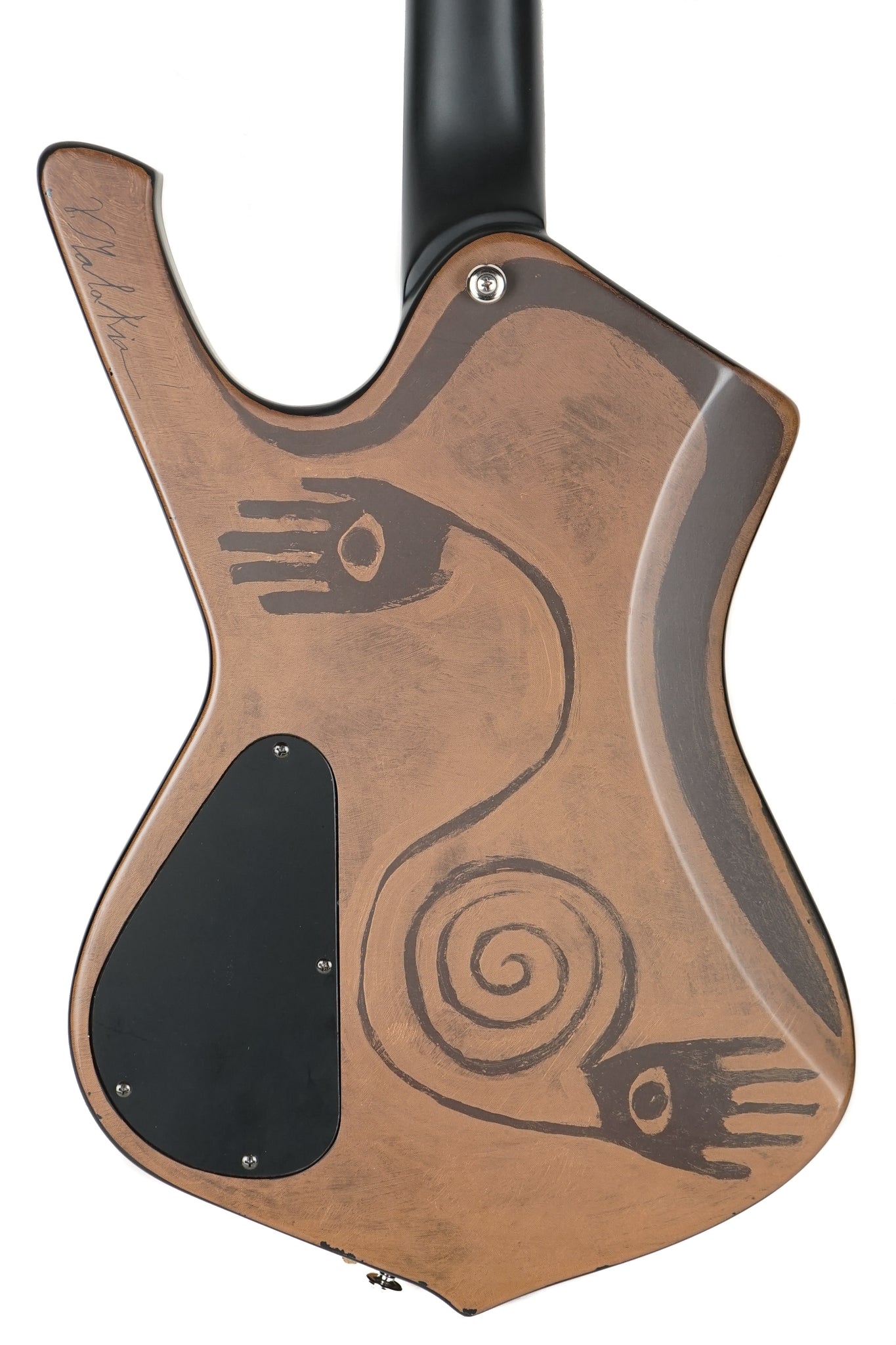 Up for sale is a 2004 Ibanez DMM1 Daron Malakian Iceman. This is the limited edition model with artwork designed by his father. These were a limited run of 300 pieces with this one being #12 of the edition. These have become highly collectible and we are thrilled to see it. Cosmetically this one does have a few bumps and dings in the graphic on both the front and back. Please see our photos for a complete cosmetic run down. There is a bit of a nick in the finish behind the 8th fret on the back of the neck. These are rare and we have never seen one before now, act quick!