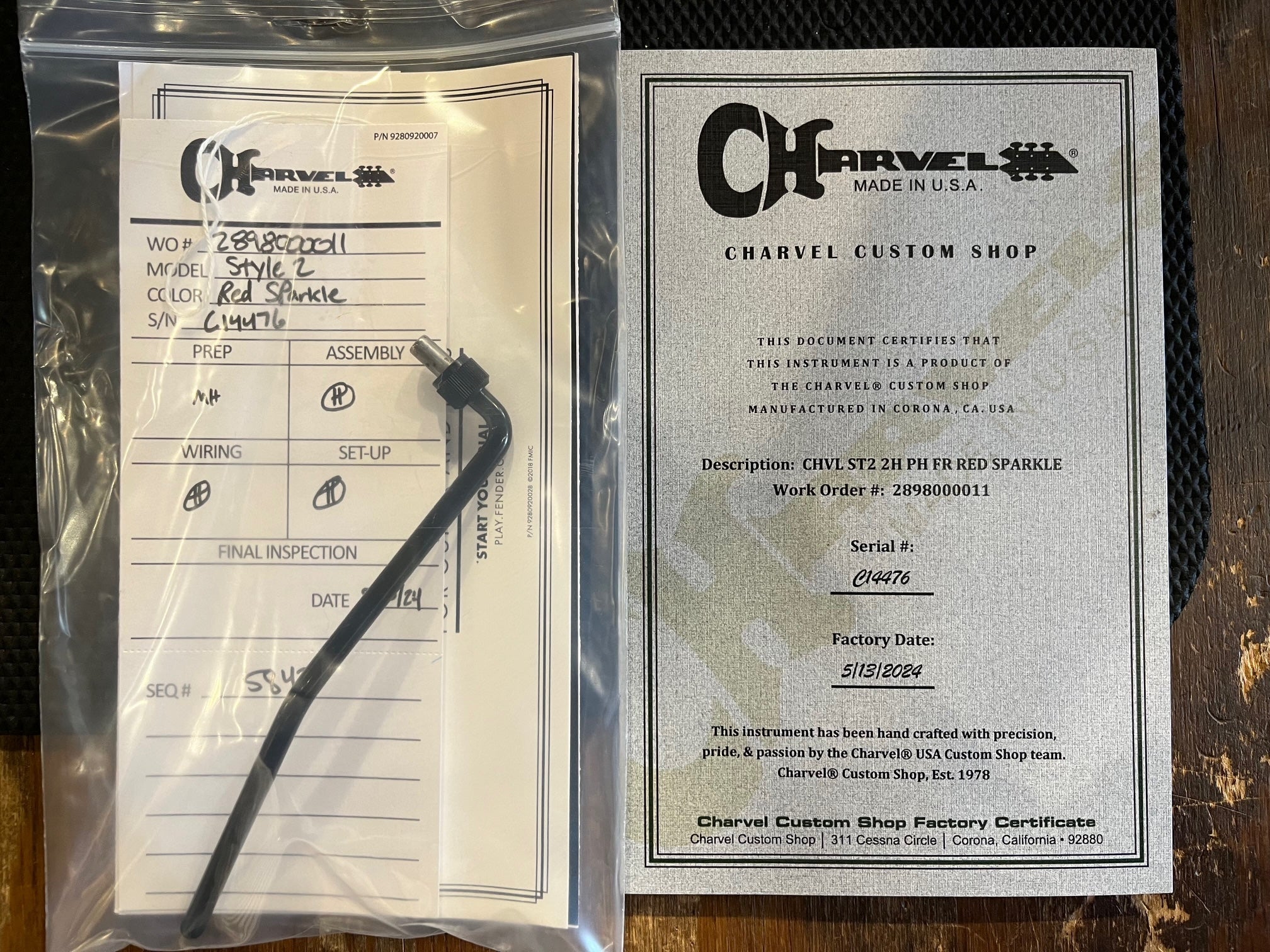 Up for sale is a 2024 Charvel Custom Shop USA Special Edition Style 2 in a Red Sparkle finish. It's not the exact same shape but if you are seeking to unleash your inner Jack Butler then look no further! We are the Northwest's premium Charvel Custom Shop dealer. This one is Pro setup in house and feels amazing. Details from Charvel are below!