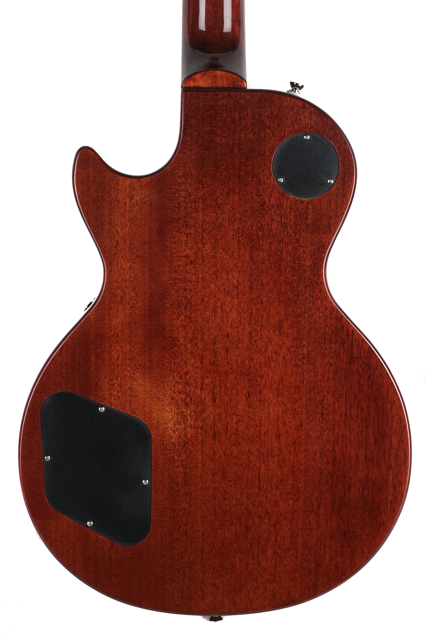Mahogany body with a maple cap and a figured maple veneer, mahogany neck with 1959 Rounded Medium C profile and long tenon, laurel fretboard, Probucker 1 and Probucker 2 pickups, CTS pots, 50s-style wiring, and a premium gig bag