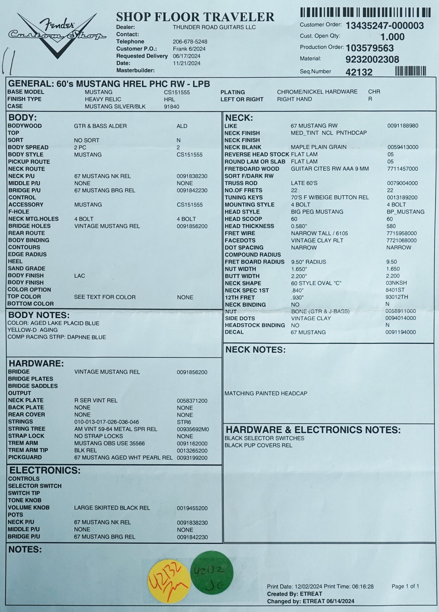Up for sale is a New Fender Custom Shop Heavy Relic 60's Competition Mustang in Lake Placid Blue. We are a Fender Custom Shop Showcase dealer and have one of the largest collections of Fender Custom Shop instruments in the Pacific Northwest. For a full list of specs please review the build sheet in our photos.