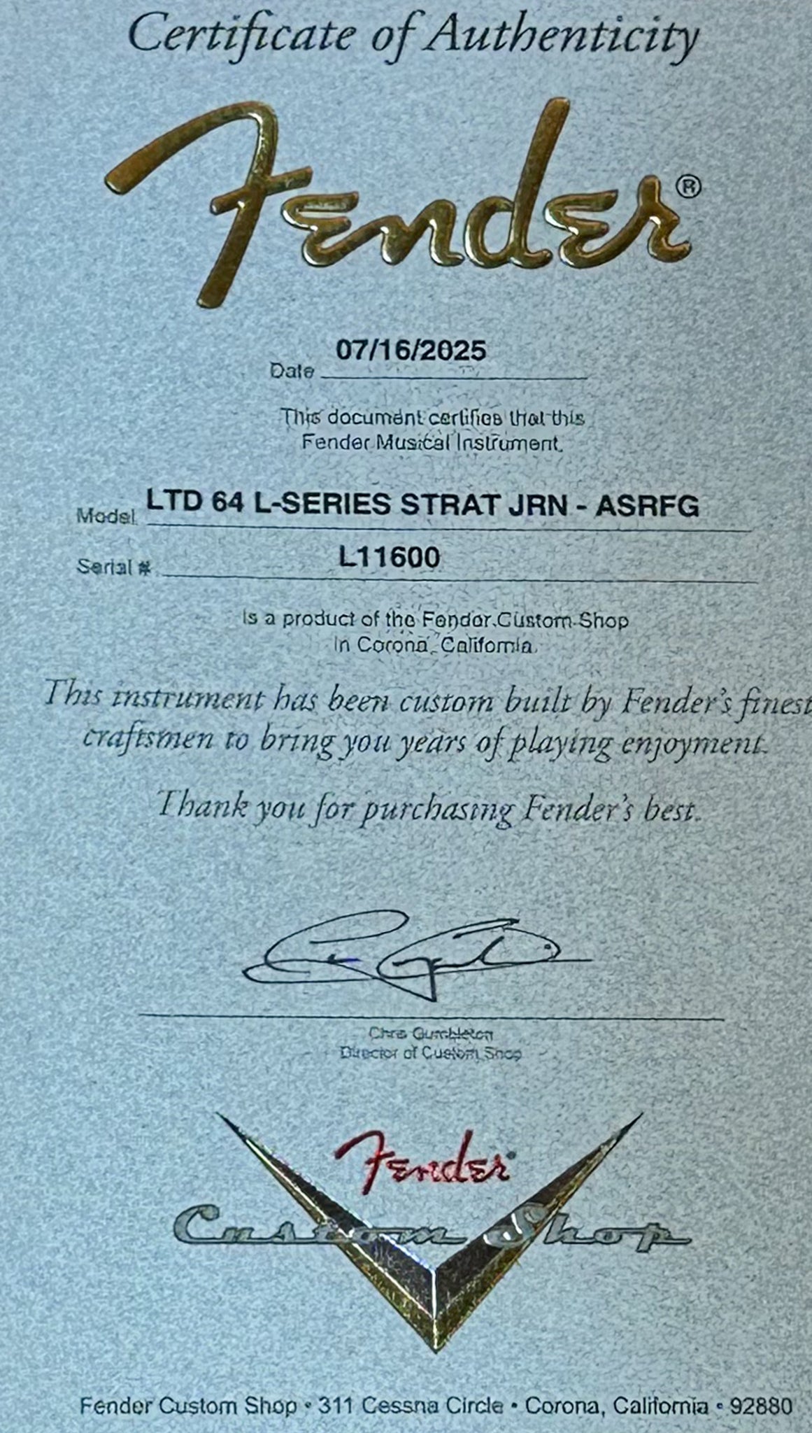 Up for sale is a New Fender Custom Shop '64 Stratocaster Journeyman Relic in Aged Surf Green. We are an authorized Fender Custom Shop Showcase Dealer and have one of the largest selections of Fender Custom Shop guitars in the Pacific Northwest! For a full list of specs please see the build sheet photo in our ad. Weight: 7lbs. 14oz.
