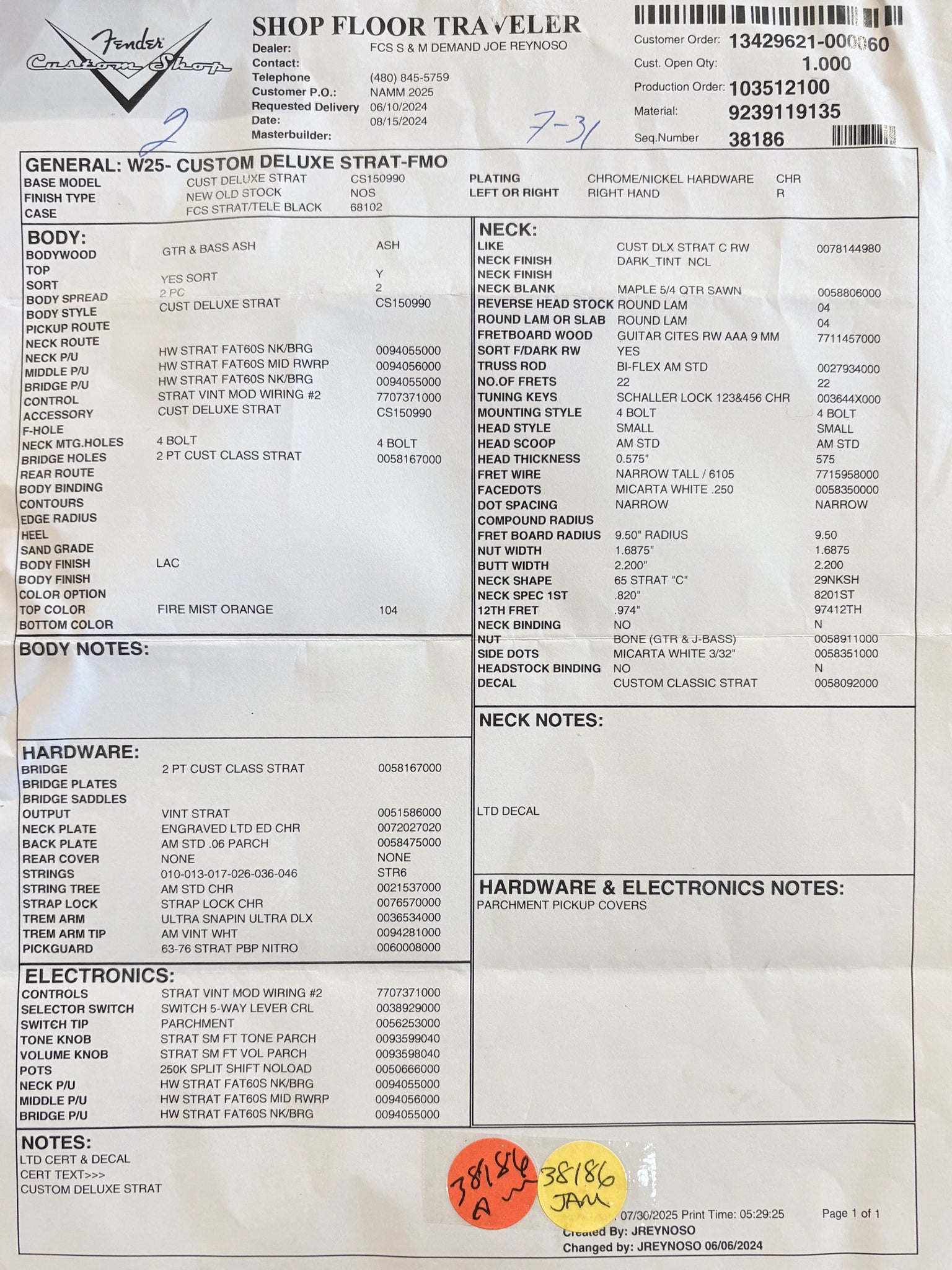 Up for sale is a New Fender Custom Shop Custom Deluxe Stratocaster NOS in Fire Mist Orange. This instrument is marked B-Stock due to a finish ding located on the bass side horn. Otherwise this instrument is as new. We are a Fender Custom Shop Showcase Dealer and have one of the largest selections of Fender Custom Shop instruments in the Pacific Northwest. Stop by and see us! Pro setup in house and comes complete with its original hard case and paperwork.