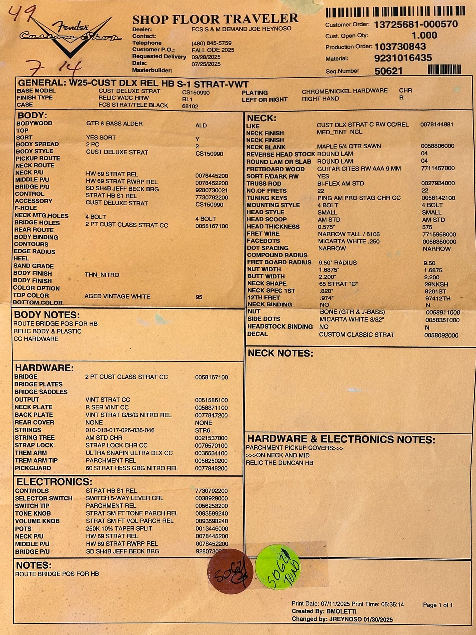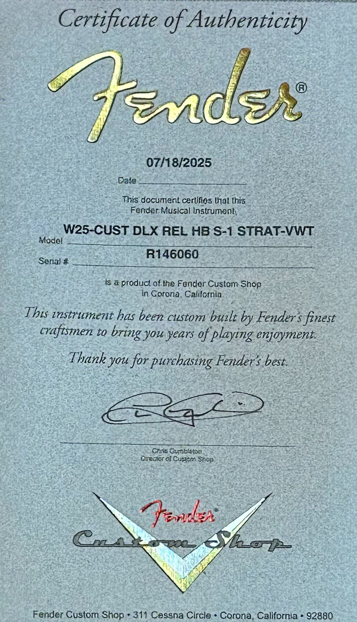 Up for sale is a New Fender Custom Shop Stratocaster Custom Deluxe Relic HSS in Vintage White. This guitar has an HSS pickup configuration, an S1 switch and some unique features. We are an authorized Fender Custom Shop Showcase Dealer and have one of the largest selections of Fender Custom Shop guitars in the Pacific Northwest! For a full list of specs please see the build sheet photo in our ad. Weight: 8lbs. 1oz.