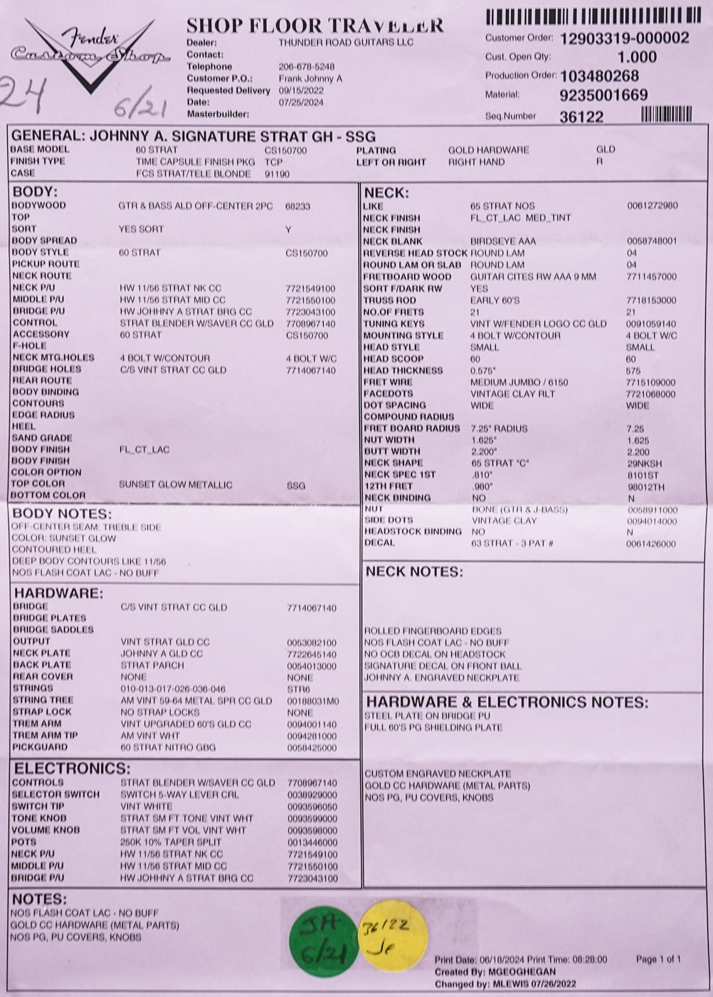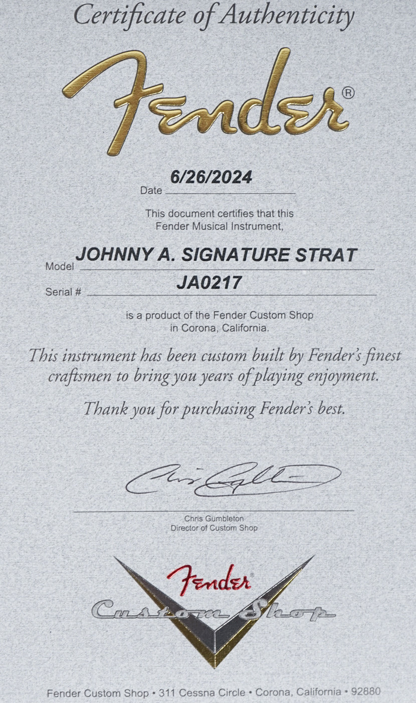 Up for sale is a 2024 Fender Custom Shop Johnny A. Signature Stratocaster in Sunset Glow Metallic. We are an authorized Fender Custom Shop Showcase dealer and have one of the largest collections of Fender Custom Shop instruments in the Pacific Northwest. For a complete list of this instruments specs please the photo with the build sheet. This guitar comes complete with its original case and a pro setup in house by our tech. Weight: 7lbs 10oz