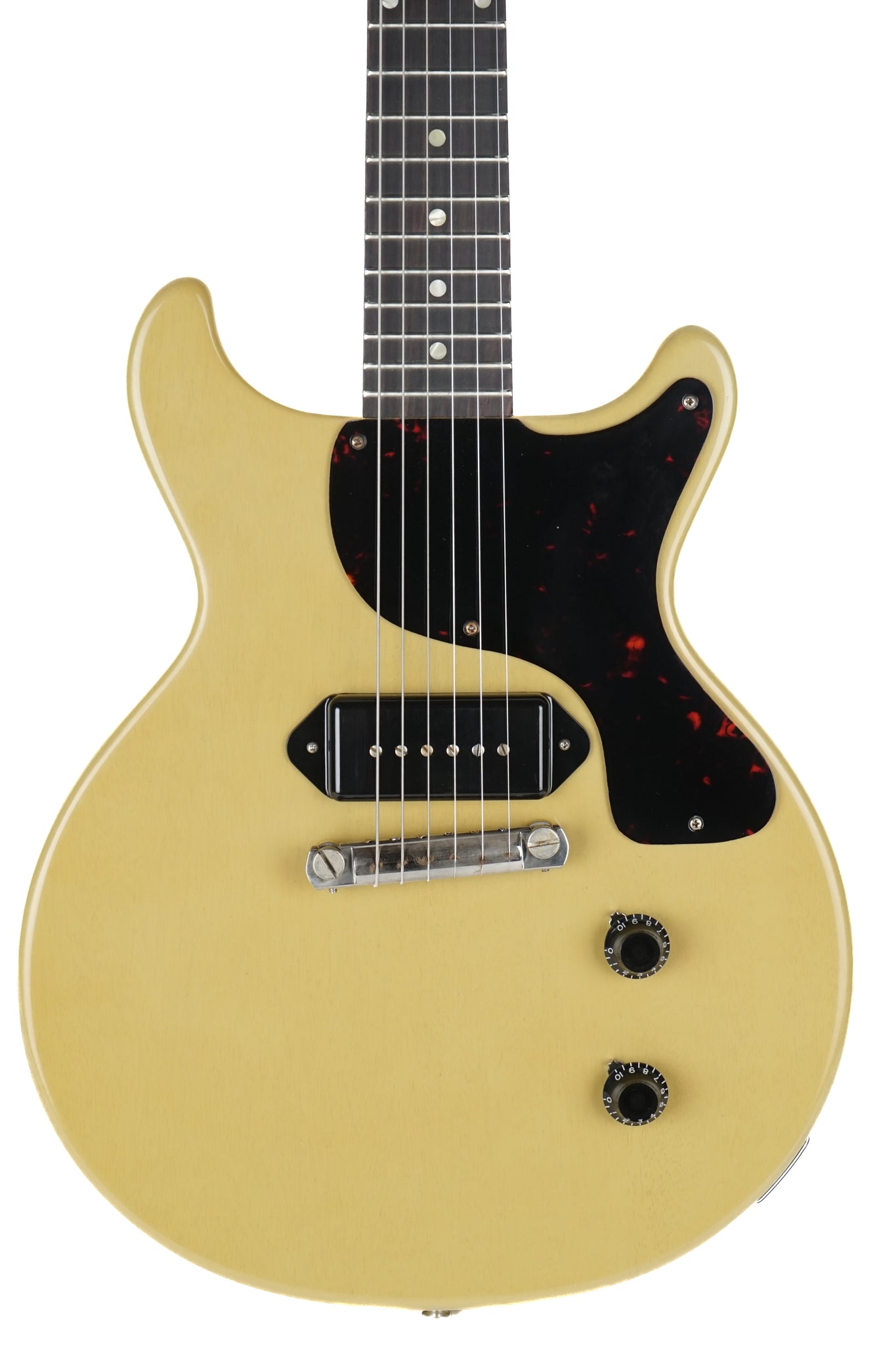 Up for sale is a New Gibson Custom 1958 Les Paul Junior Double Cut Reissue VOS in TV Yellow. Ask our owner and he will say something along the lines of "If you are hanging out with three chords and seeking the truth this is the one for you!" We are an authorized Gibson dealer and this one ships with a full manufacturers warranty along with a pro setup by our in house tech.