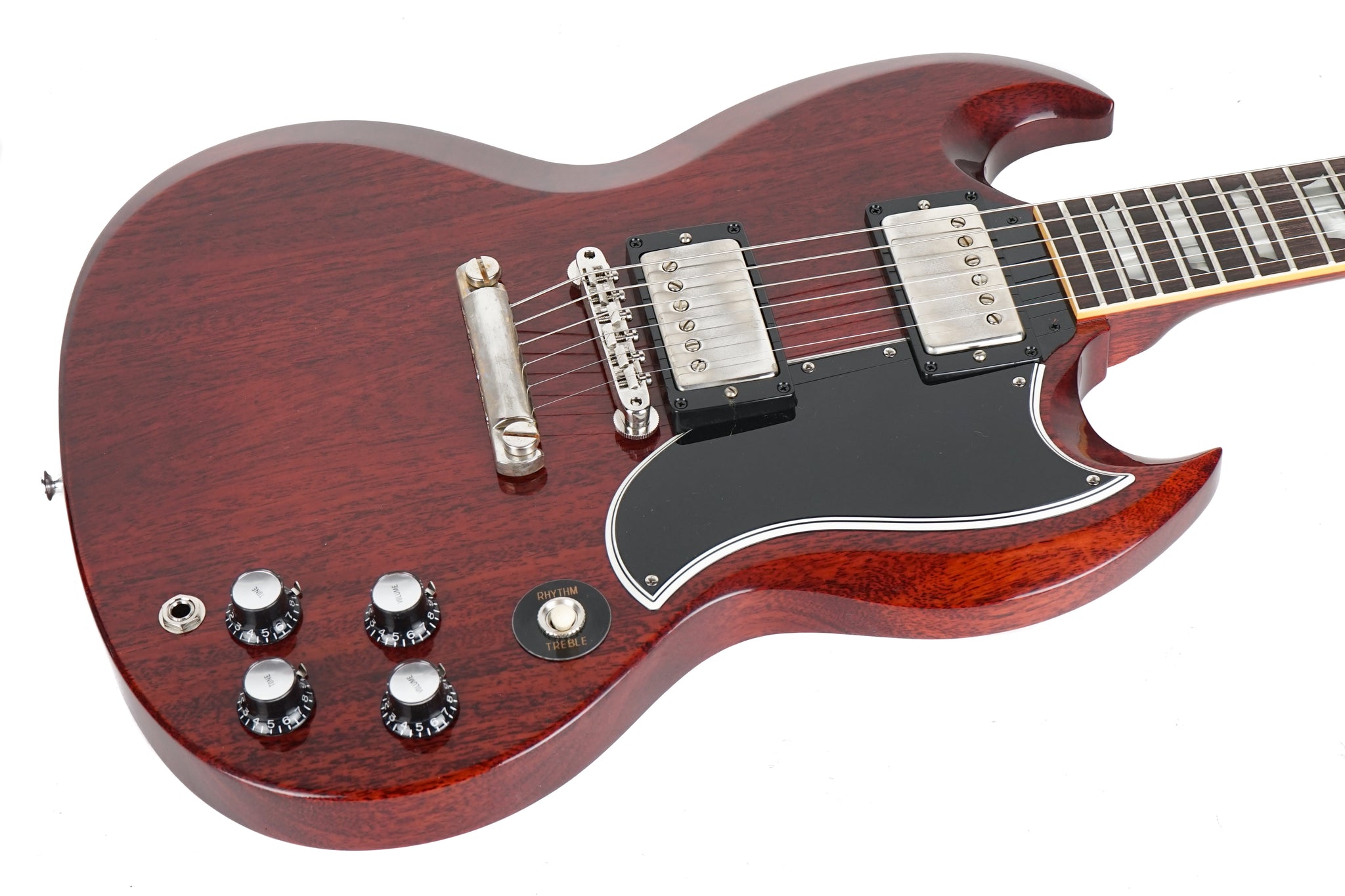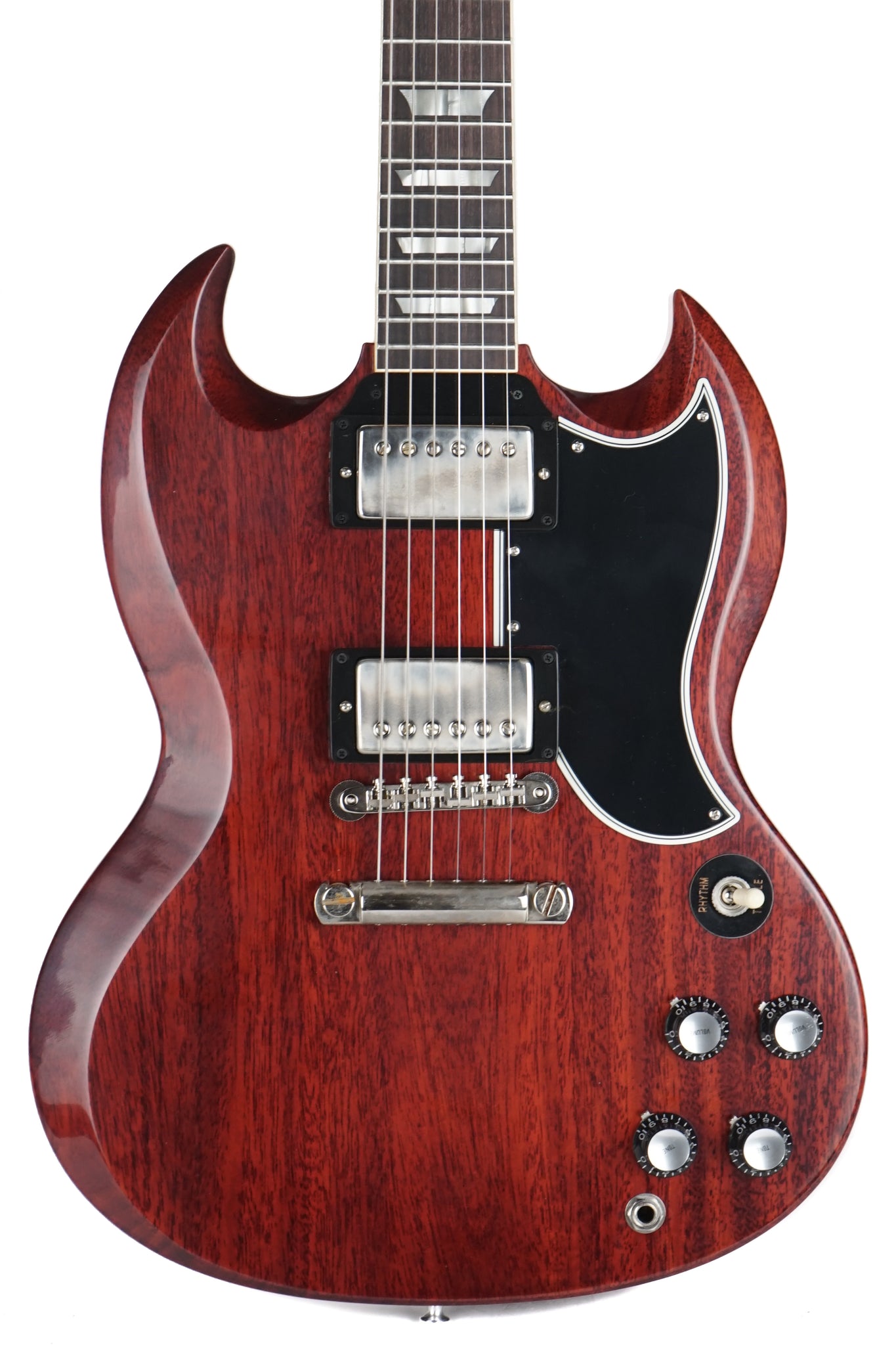 A 1960s SG has been the favorite of some of the most iconic guitarists ever...Angus Young, Tony Iommi, Robby Krieger, George Harrison, Dickey Betts, Gary Rossington, and Eric Clapton, to name a few. The SG's devilish points and curves, blistering humbucker tone and fast-playing neck help to make it one of the most coveted and revered 1960s Gibson models. This Custom Shop Historic Reissue SG continues the legendary magic of the originals with all solid woods, historic hide-glue construction methods, the finest vintage replica parts and materials available and the instantly-recognizable, powerful tone of pure rock 'n roll.