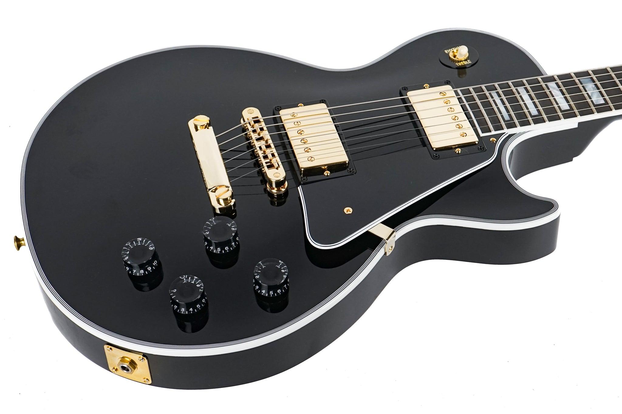 As the flagship model from Gibson Custom, the Les Paul Custom lives up to the high standards set by its 1950s archetype while evolving to a level of tone and performance more suited to today's musical demands. Beneath the layers of its "tuxedo" appointments lies the crisp, edgy voice of a matched 490/498 humbucker set, a solid Ebony fingerboard, a long neck tenon for maximum sustain and a two-piece maple top over a solid mahogany body which adds the perfect amount of sonic bite to everything from jazz to hard rock. It sounds as good as it looks, and it looks as good as it sounds!
