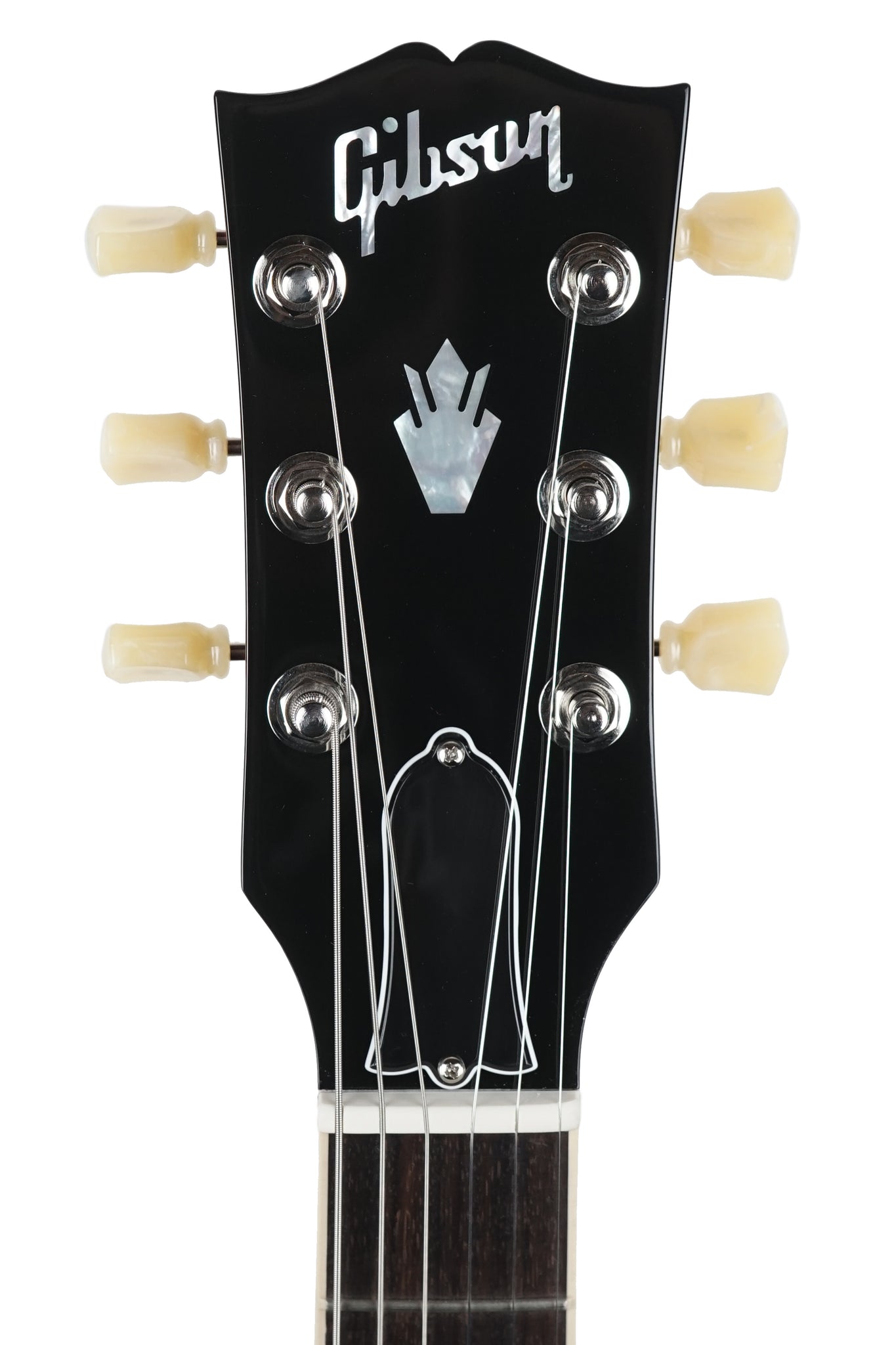 From its inaugural appearance in 1958, the Gibson ES-335 has remained an unmatched standard, prized for its versatility and rich tonal palette. The ES-335 Figured preserves the same classic construction while adding an AAA figured maple top for an elevated visual statement. Its laminated maple/poplar/maple body and solid maple centerblock help control feedback while retaining the airy resonance that has made the ES-335 beloved by players across genres—from warm jazz to articulate rock, and all sonic stops in between. A mahogany neck with a Rounded C profile provides a comfortable grip, whether you’re playing chords in the lower register or exploring melodic lines further up. The bound rosewood fretboard with acrylic Small Block inlays offers a timeless aesthetic, with Vintage Deluxe tuners with Keystone buttons completing the classic headstock look. Paired with a lightweight aluminum ABR-1 Tune-O-Matic™ bridge and Stop Bar tailpiece, players can count on precise, stable tuning and accurate intonation for every performance. Calibrated T-Type humbuckers™ deliver a dynamic blend of vintage-inspired sweetness and modern definition, while hand-wired controls with Orange Drop® capacitors in the tone circuit ensure responsive, musical adjustments to volume and tone. Renowned for its comfort and remarkable sonic adaptability, the ES-335 Figured stands as both a nod to the original 1958 model with a refined visual aesthetic. Its striking figured top, adaptable electronics, and comfortable design make it a standout choice for players seeking classic tone and modern reliability in one elegant package.