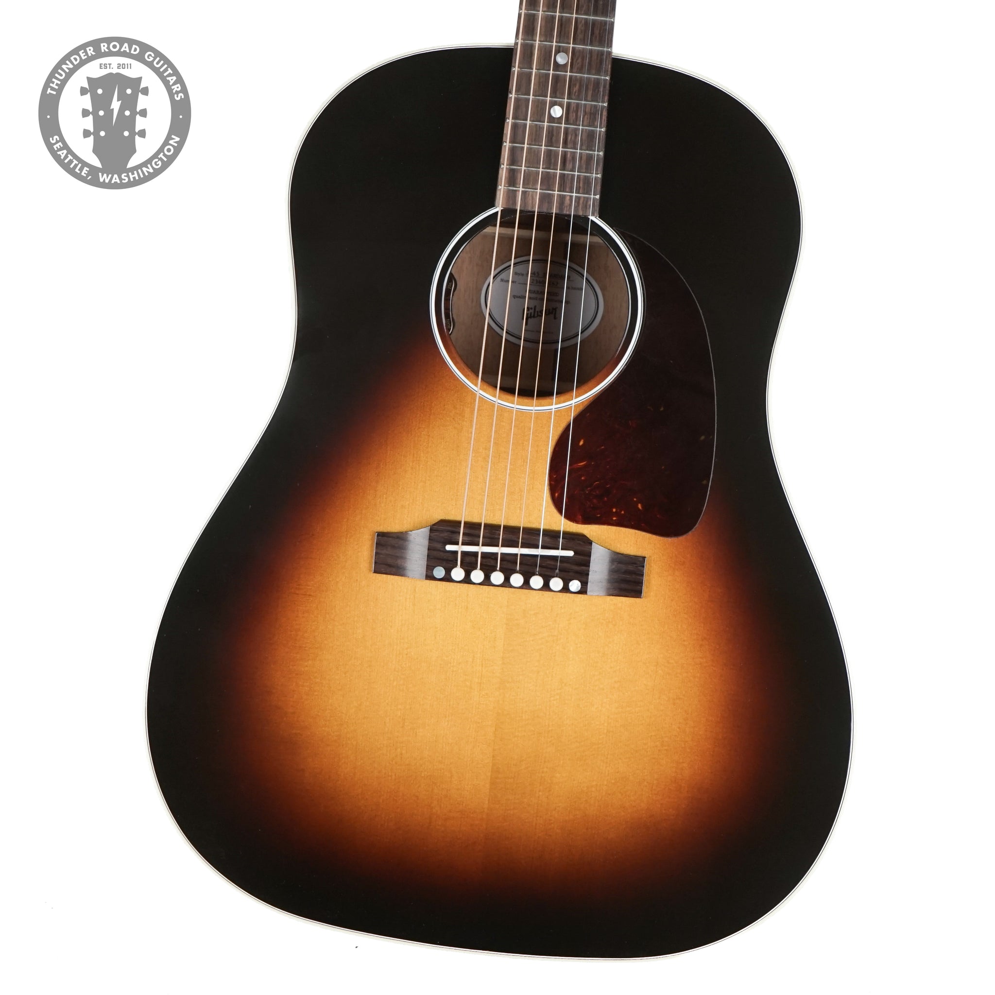 The J-45 is Gibson's best-selling acoustic of all time. Nicknamed "The Workhorse" and first introduced in 1942, this iconic acoustic has become the cornerstone of its round-shoulder, dreadnought line. World renowned for its full, balanced expression, warm bass and excellent projection, the J-45 has been refined to carry this legacy to new heights. The Gibson J-45 Standard delivers a sound with incredible dynamic range, warm mids, and a tight punchy bass.