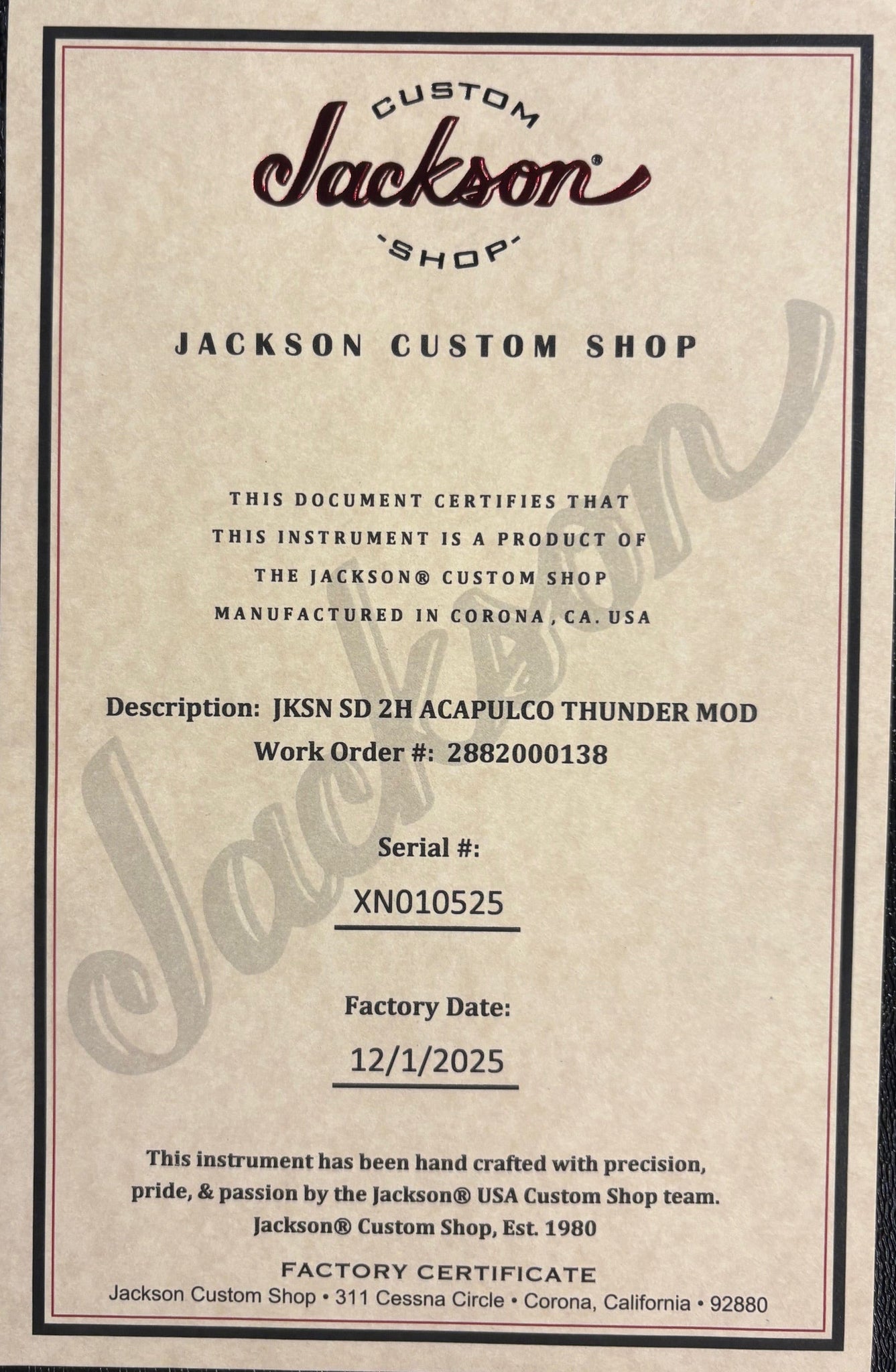 The Jackson Custom Shop Thunder Mod is exclusive to Thunder Road Guitars. A true pacific northwest original instrument!