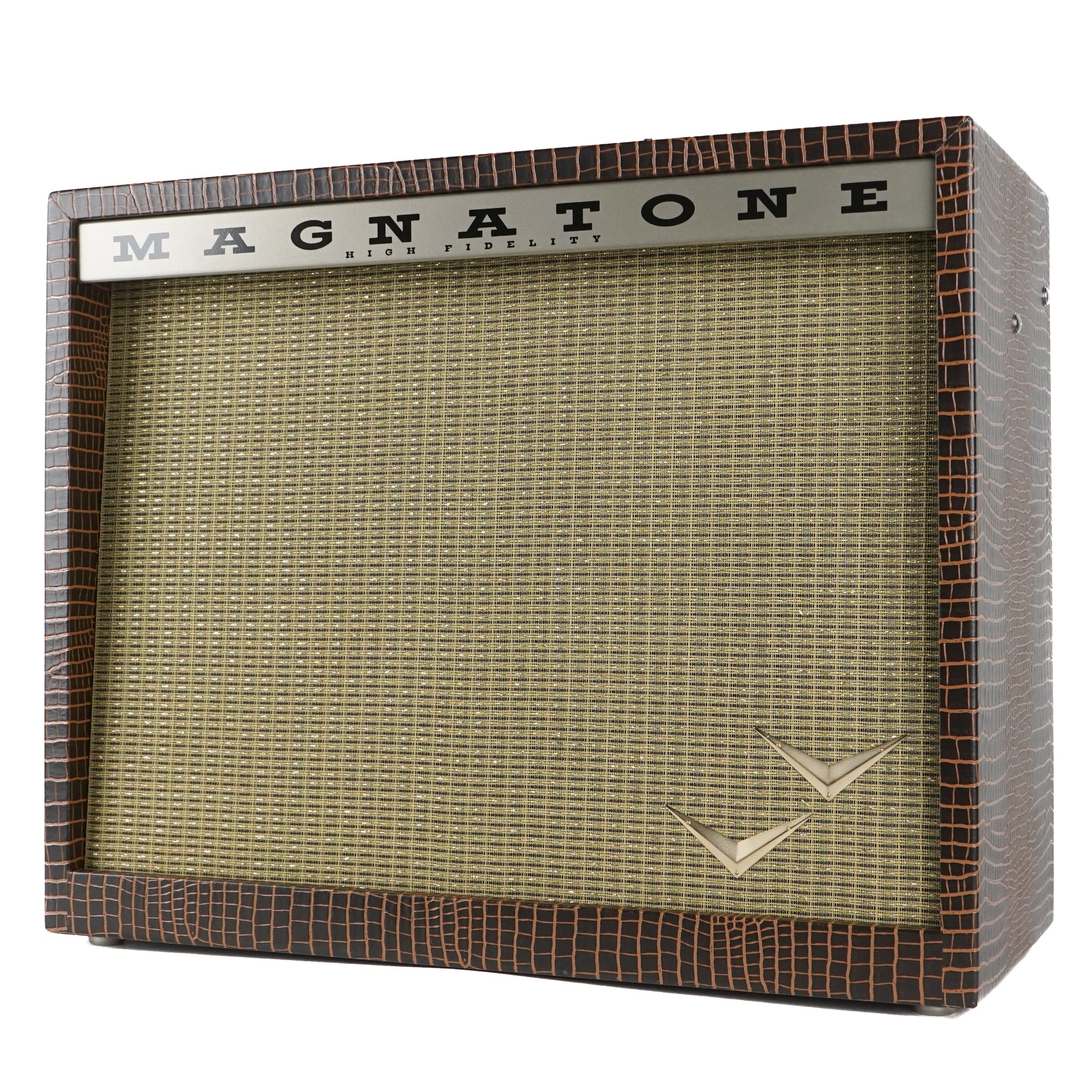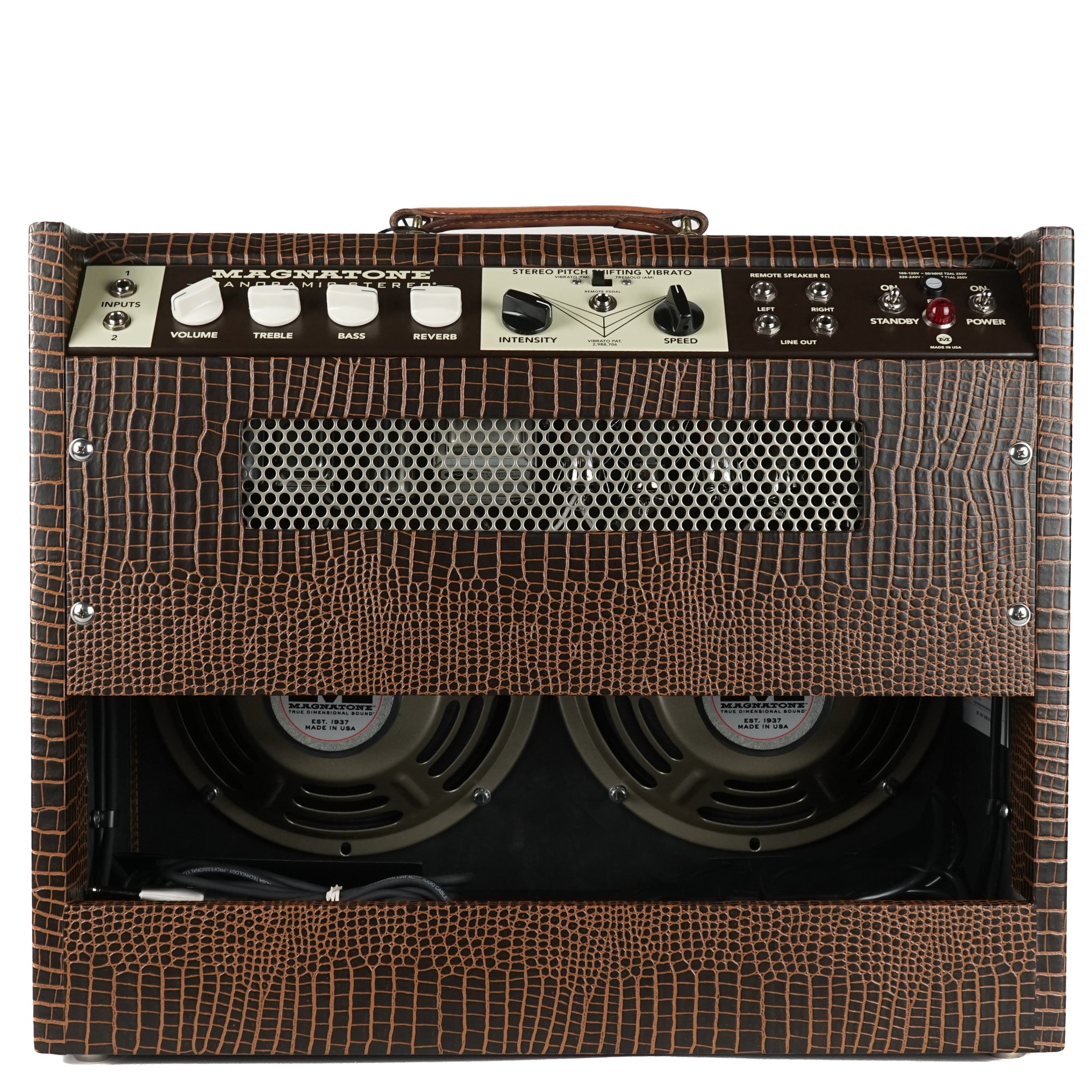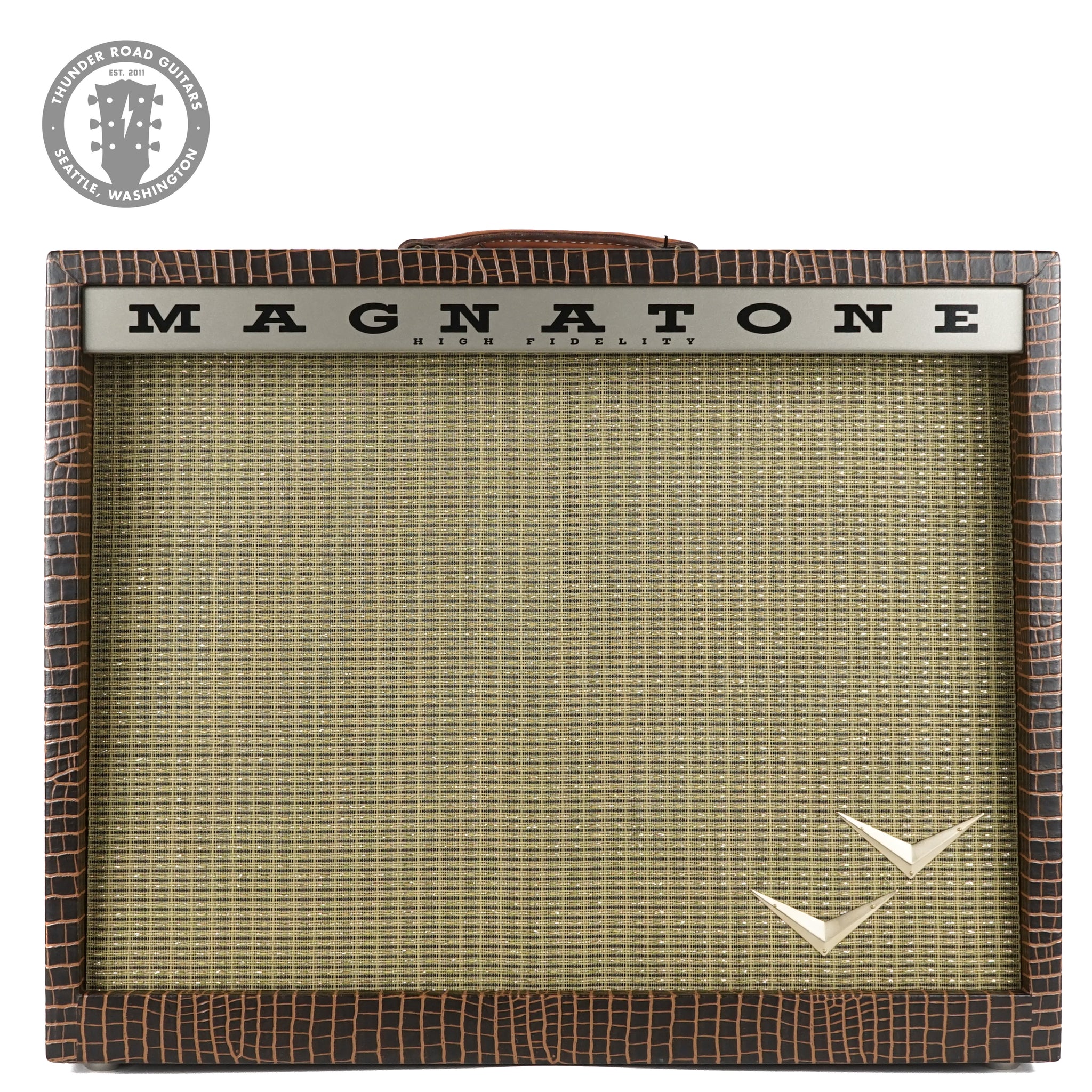Up for sale is a New Magnatone Panoramic Stereo Combo Amp. This amp is killer and comes in a Thunder Road Exclusive Colorway of Brown French Alligator Tolex and a Gold Stripe Grill. This amp looks absolutely stunning in person and sounds even better. Thunder Road Guitars is Washingtons only Magnatone dealer and we could not be more proud. Come by and give this one a spin!