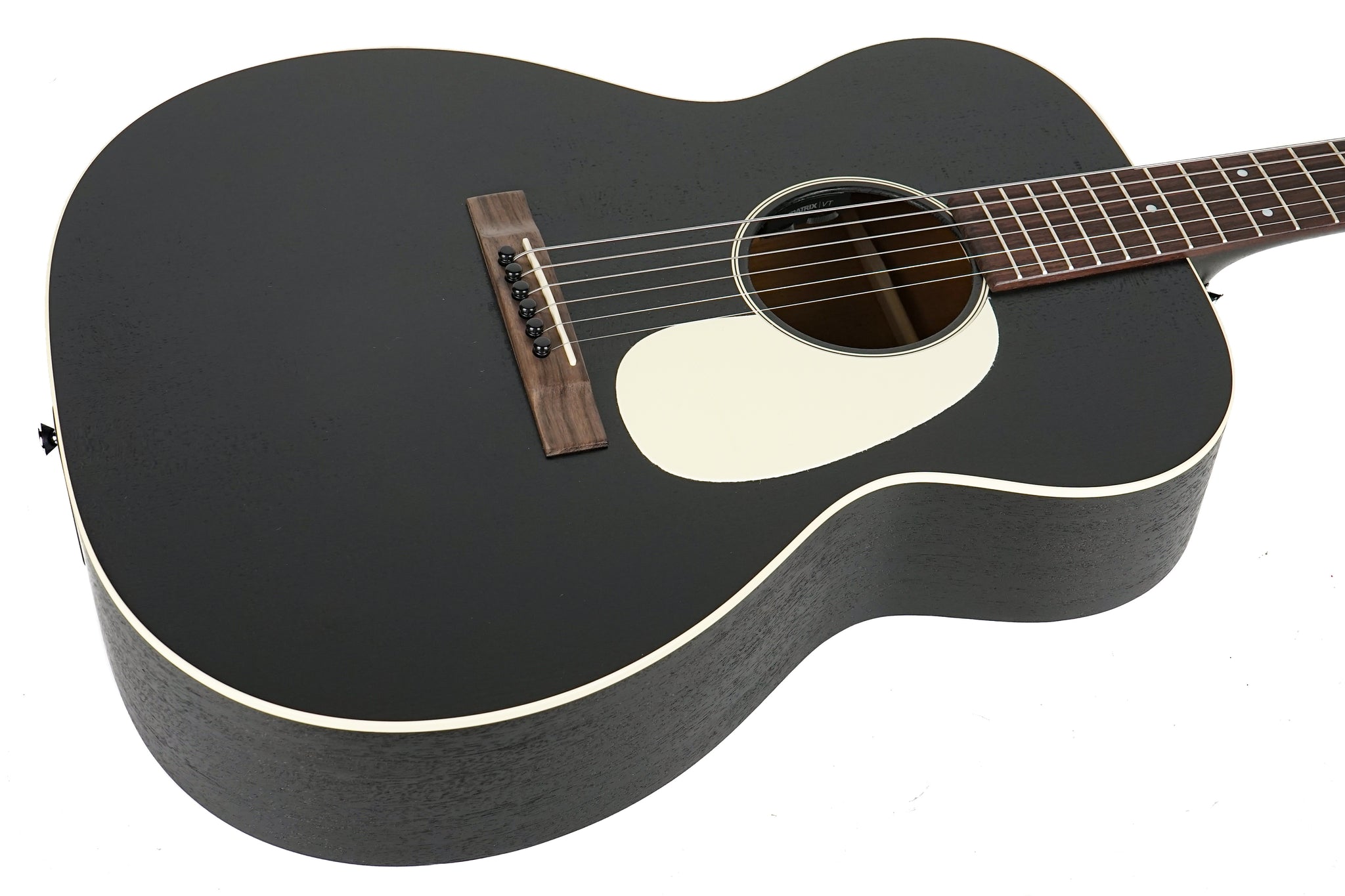 The 000-17E Black Smoke blends vintage style with a balanced tone that’s full of character. Built with a solid spruce top and mahogany back and sides, it offers clear articulation with a touch of warmth—ideal for a wide range of playing styles. The satin black finish, antique white binding, and ivoroid pickguard give it a bold, old-school look that stands out. Scalloped X-bracing brings out dynamic response and tonal nuance, while the 24.9" scale length and 1 3/4" nut width provide a comfortable playing feel. The Modified Low Oval neck profile makes for easy fretting, and the East Indian rosewood fingerboard features 1955 Style 18 mother-of-pearl inlays for a classic touch. Aged nickel tuners and a modern straightline rosewood bridge round out the aesthetic. Whether you're writing, recording, or playing live, the 000-17E Black Smoke delivers vintage inspiration with every note.
