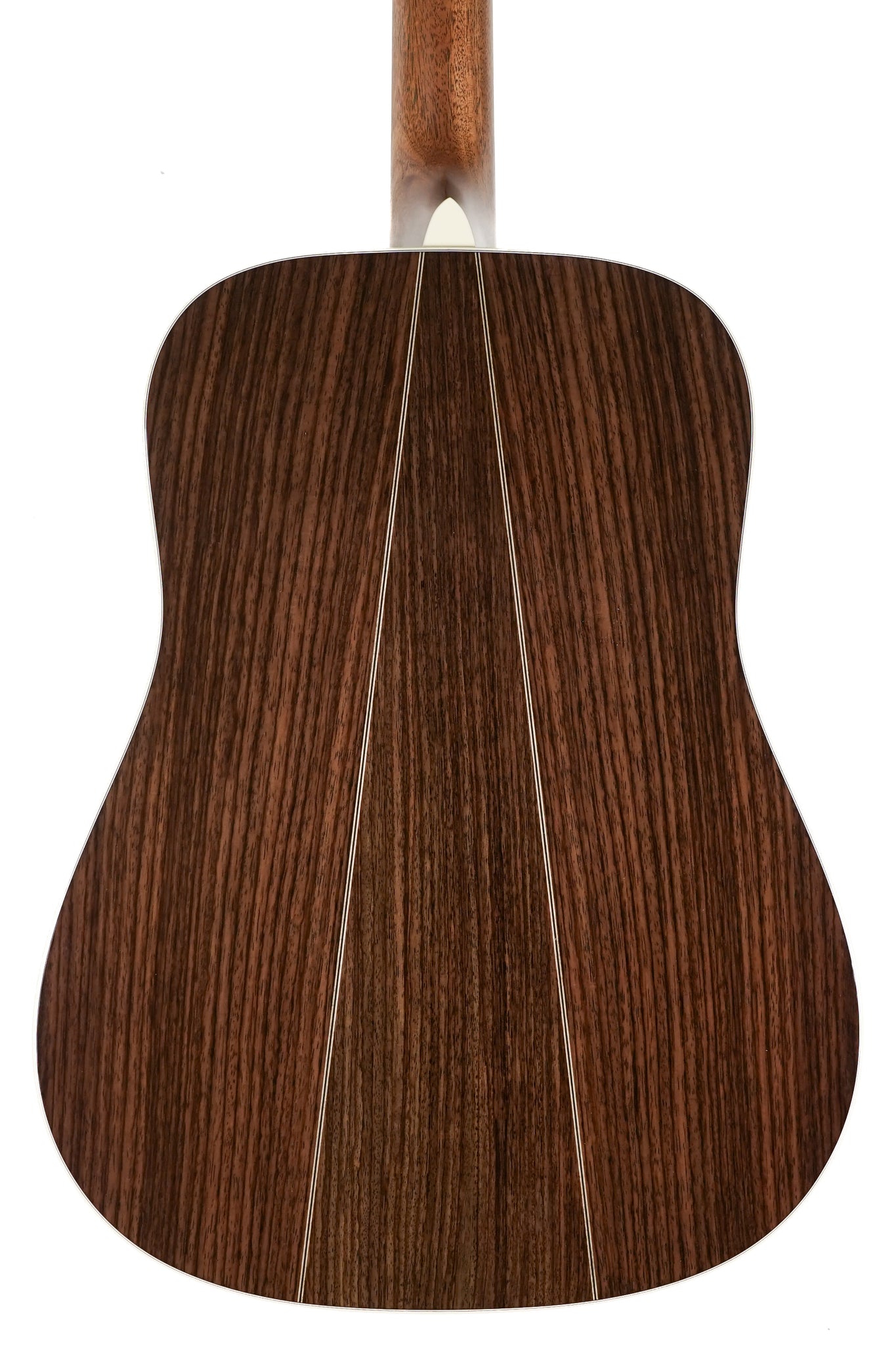 The Martin D-35 is a unique and trusted classic, first introduced in the mid-1960s and played by countless music legends ever since. Its Dreadnought body size delivers a bold, projective sound with strong bass, clear trebles, and rich overtones, making it a versatile choice for players of all styles. Handcrafted with a solid spruce top and solid East Indian rosewood back and sides, the D-35 stands out with its iconic three-piece back and lighter, non-scalloped 1/4" bracing, offering a balanced yet powerful tone. The satin neck, featuring a Golden Era (GE) Modified Low Oval profile, high-performance taper, and 25.4" scale length, ensures smooth, effortless playability. Complete with antique white binding, a bound ebony fingerboard with mother of pearl dot inlays, an ebony bridge with bone pins, and chrome enclosed gear tuners, the D-35 is built to carry on its legacy in your hands. Available in a variety of striking gloss options, it’s a guitar you can trust to unleash the artist within.