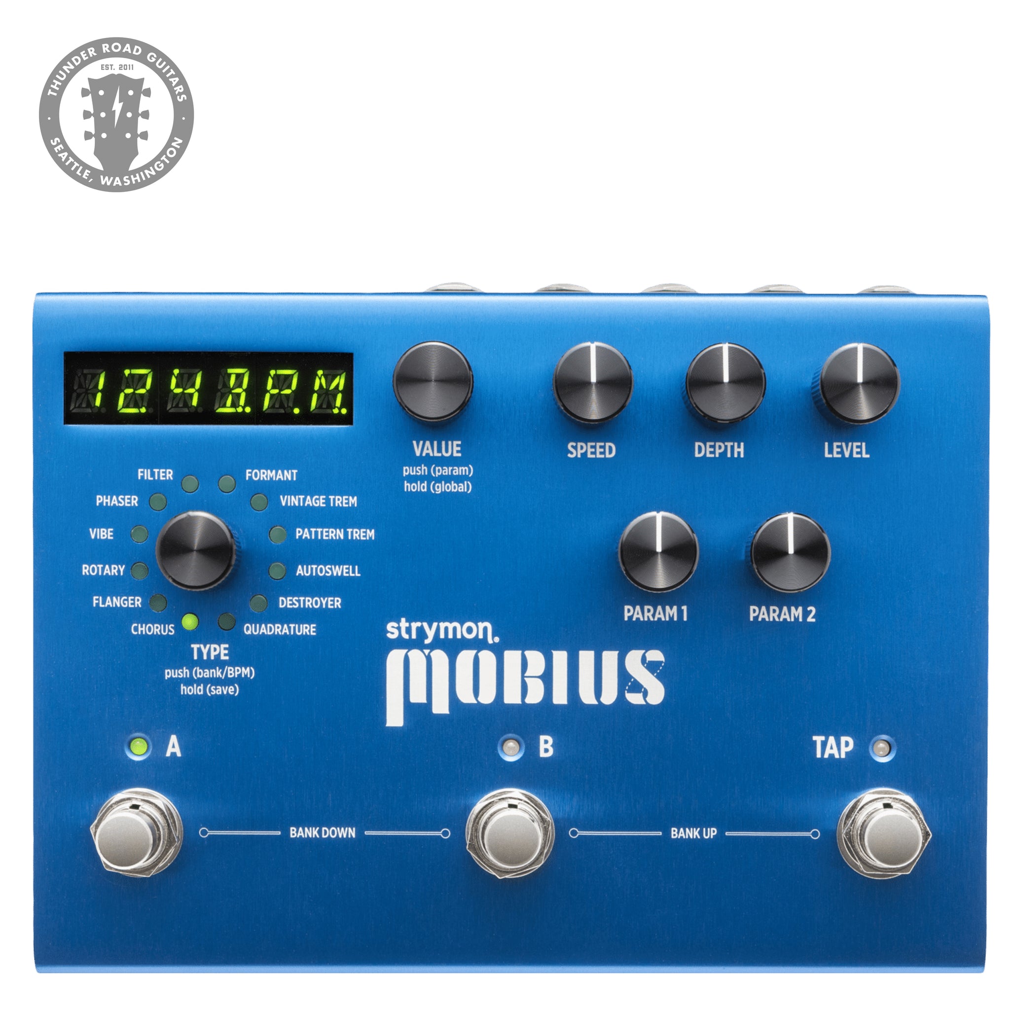 Up for sale is a brand new Strymon Mobius Multidimensional Modulation pedal. From the manufacturer: