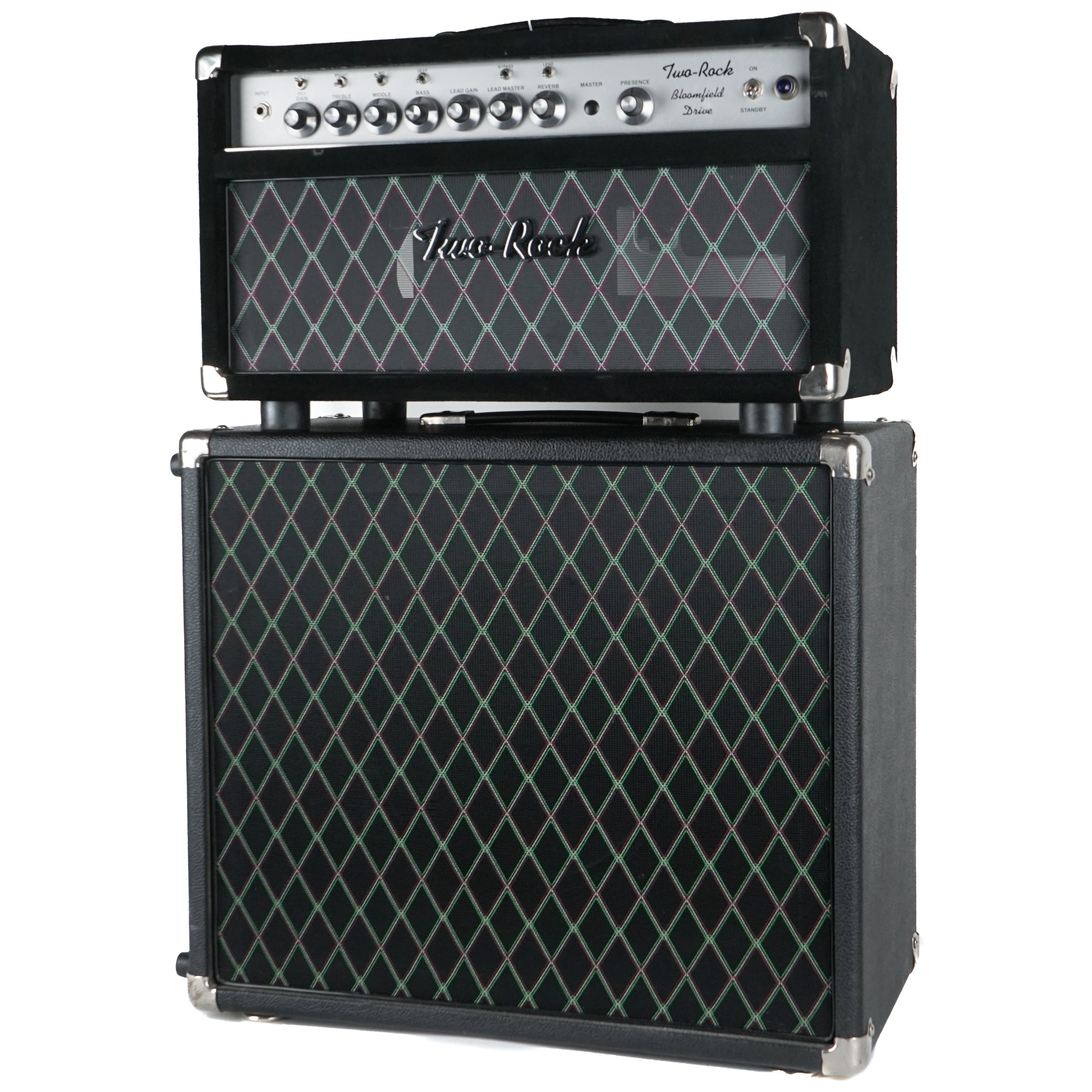 Up for sale is a one of a kind New Two Rock Bloomfield Drive Prototype W/ Cabinet. Being a Two Rock dealer when we were approached by Eli Lester to offer this amp for sale in our shop we jumped at the chance to say yes! This one is a prototype Bloomfield Drive which was made for Josh Smith. This amp features NOS parts and no master volume. The amp was made in black suede with the now discontinued diamond grill cloth. The amp being a shop prototype does have some wear marks on the tolex, we will this adds to the vibe of the amp. The cabinet is black tolex with matching diamond grill cloth and features a Two Rock TR12-65R 8 ohm speaker made by eminence which also is a discontinued and no longer available speaker.