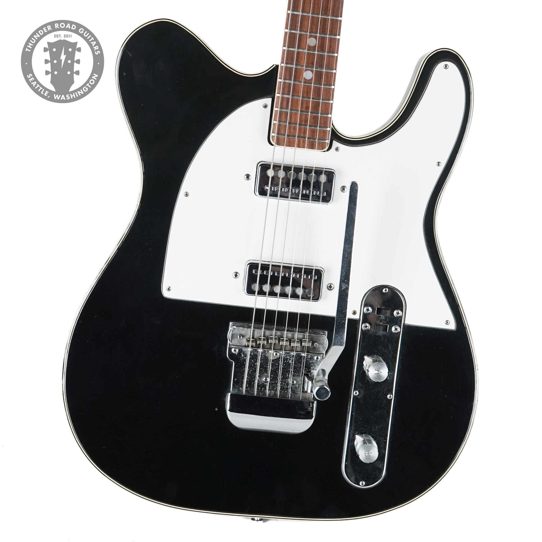 Up for sale is a Vintage 1960s Greco KF-190 Tele Style in Black. This model is a rare late 60's MIJ electric guitar that blends a Telecaster and Rickenbacker esthetic. It features a lightweight, fully hollow mahogany laminate body with a semi-hollow construction, dual single-coil pickups, a rosewood fretboard, and offers bright, articulate, and strong low-end tones suitable for surf, rock, and blues. This one plays ok but does have a little hump in the neck on the bass side leading to slightly higher action and the low E fretting out past the 10th fret. Comes complete with a gig bag.