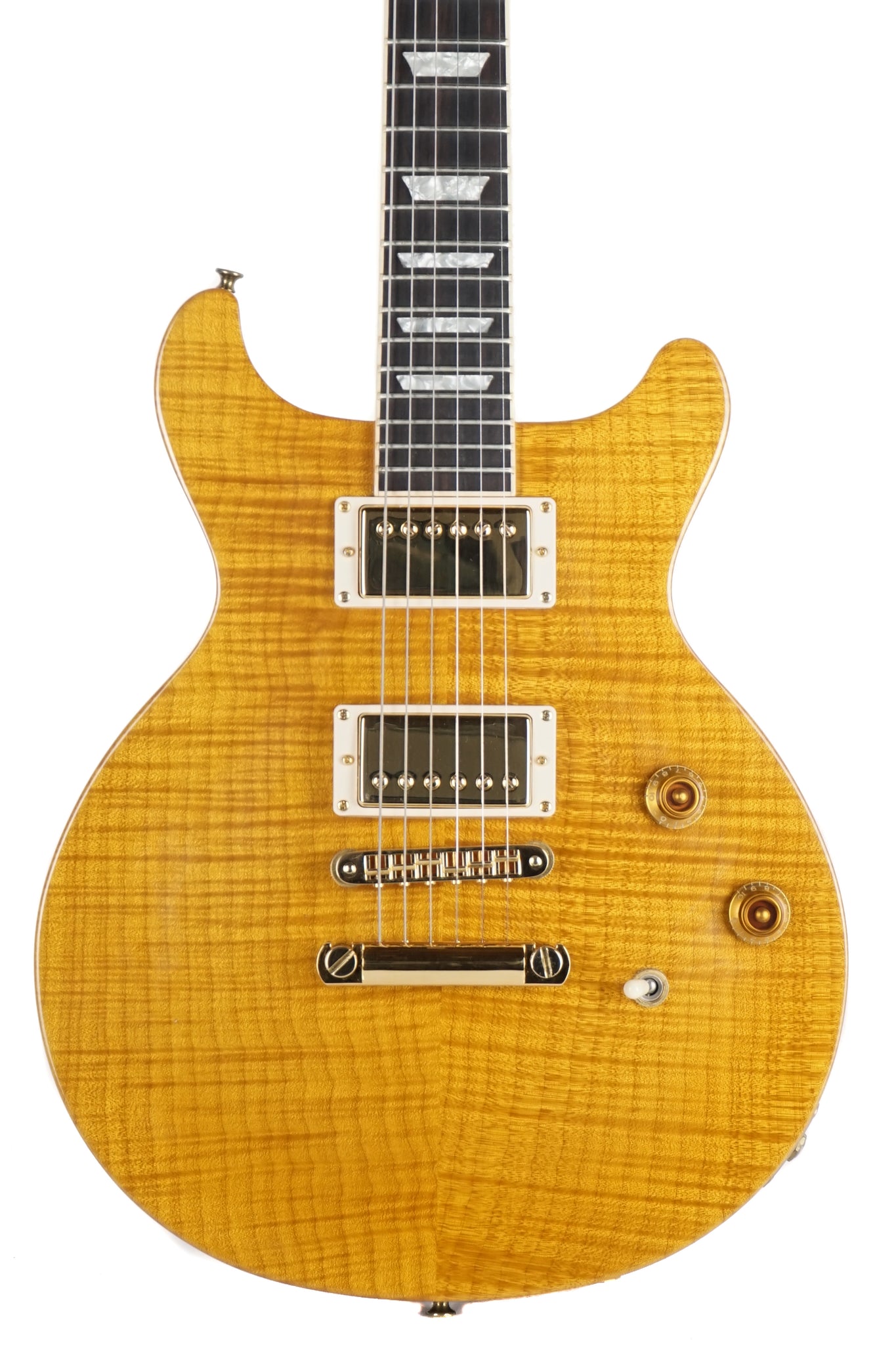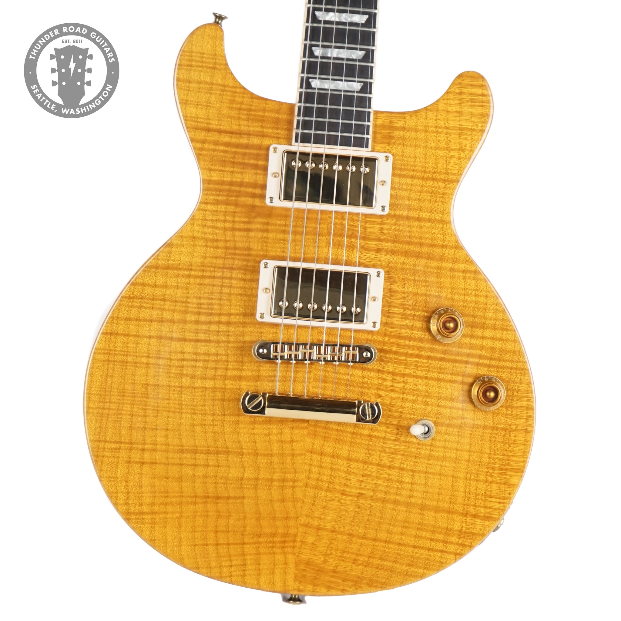 Up for sale is a stunning 1998 Gibson Les Paul Standard with a jaw dropping maple top and double cut away in its original trans amber finish. Rosewood fretboard with Pearloid trapezoid fret markers on a double bound neck. Matching gold hardware all around is a perfect look! Overall in excellent condition less some finish shrinkage located at the headstock logo and some very faint play wear. Plastic still on the back cover, very clean! The 490R Neck and 498T Bridge absolutely take advantage of the DC style body, this guitar screams! Pro setup in house and includes its original hard shell case. Weight: 7lbs. 7oz.