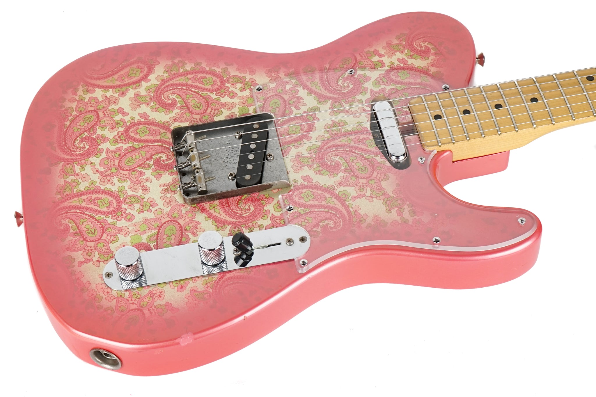 Up for sale is a killer 1985 Fender TL69 Made in Japan Paisley Telecaster. This model represents the first true reissue of the original Paisley Teles from the late 1960s. I also love when these come in and they have an. amazing look and feel. This particular example has a replaced pickguard, some scattered dings / dents, signs of finish wear and a few very small finish touch ups. Wonderful player and obviously a looker! Pro setup in house and comes complete with a non original hard case. Weight: 7lbs. 5oz.