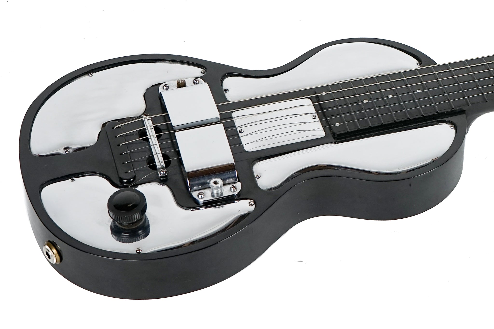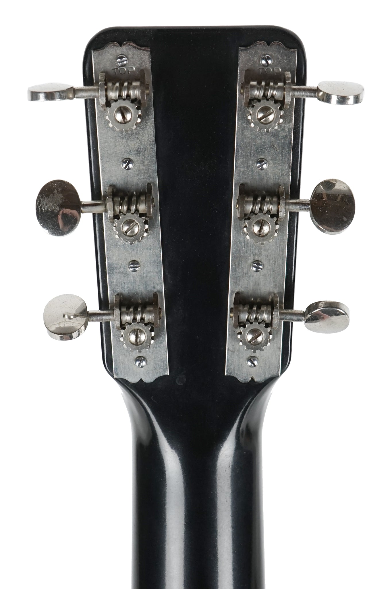 Electro String (Rickenbacker) started manufacturing bakelite guitars in 1933. Mostly square necked, Hawaiian or ‘steel’ guitars, they also manufactured round neck, Spanish versions, the Model B. These were designed to be played as normal, fretted guitars.